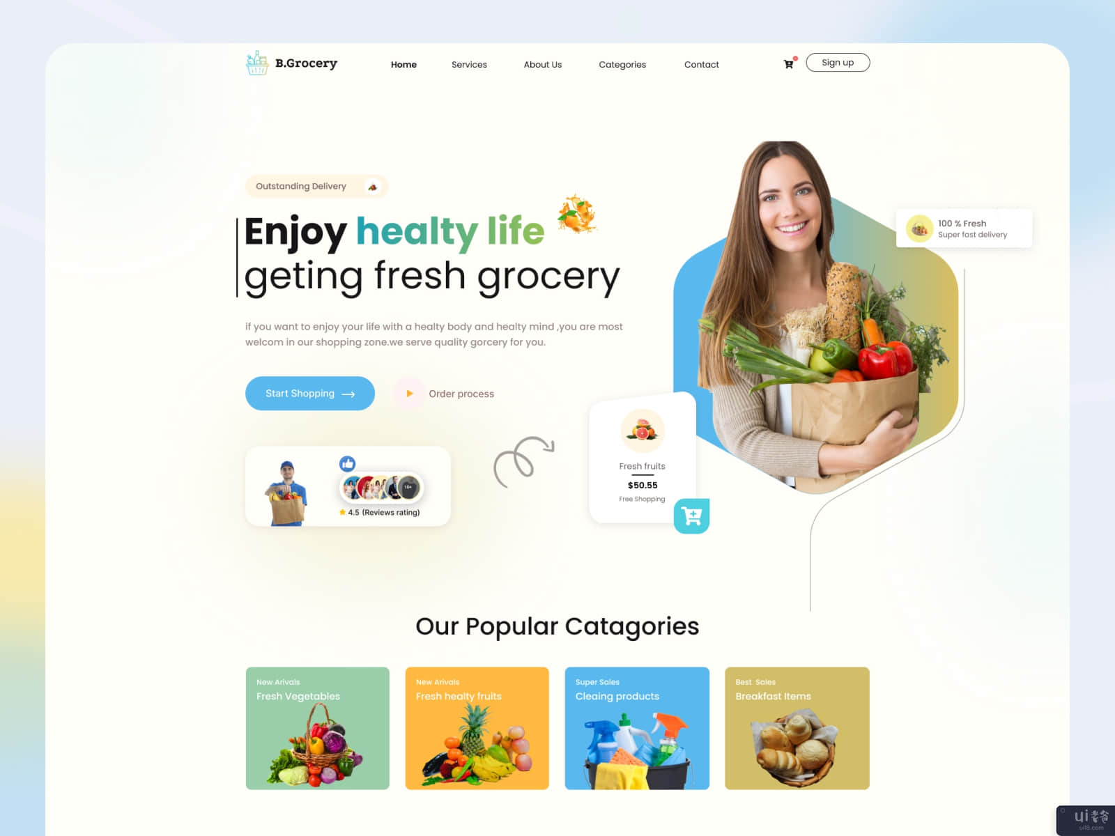 杂货店网站UI登陆页面探索(Grocery shop website UI landing page exploration)