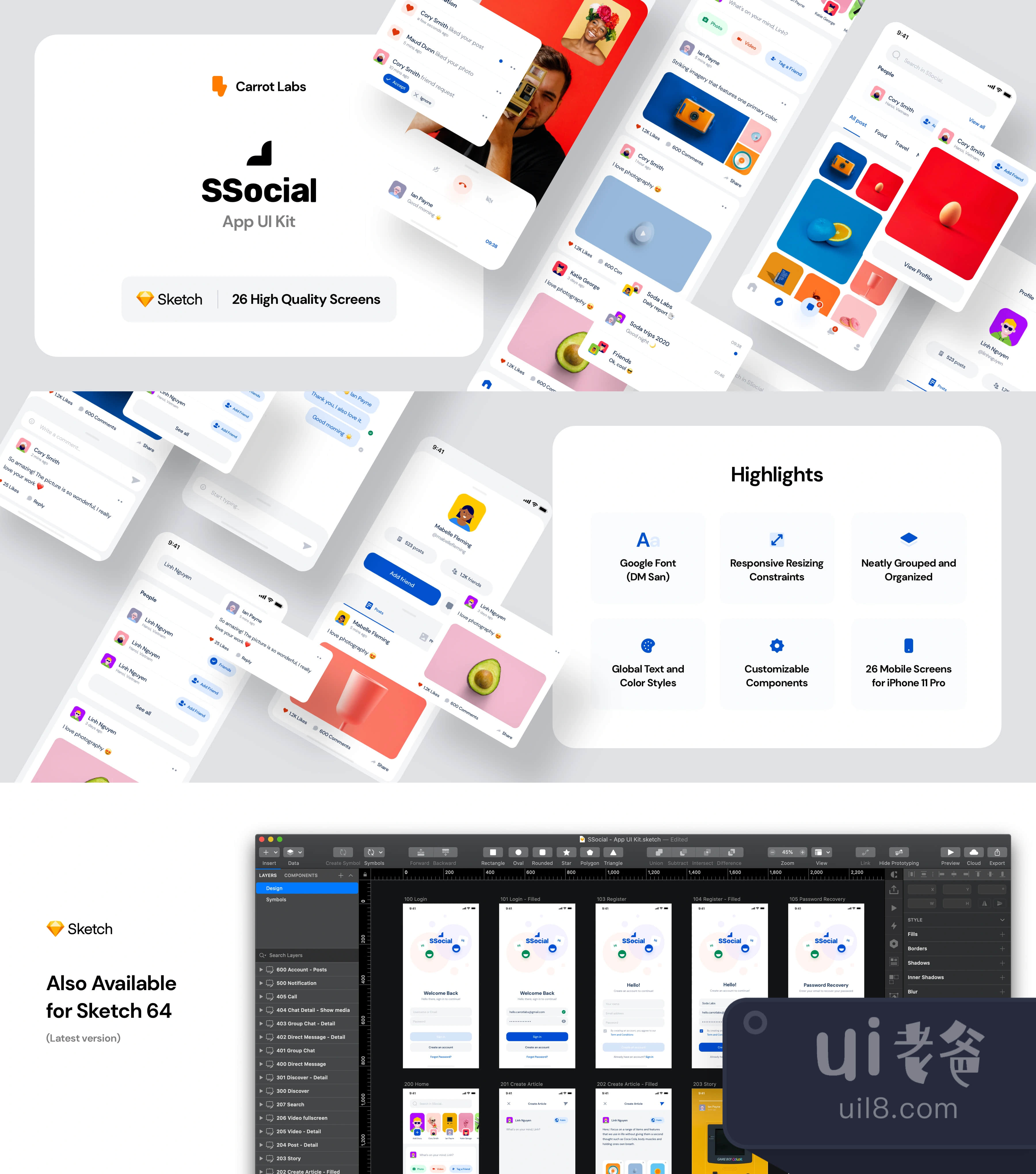 SSocial - App UI Kit, our new social platform that gives you different elements for your social networking needs, helps you accelerate and accelerate the design process to create new designs and complex.