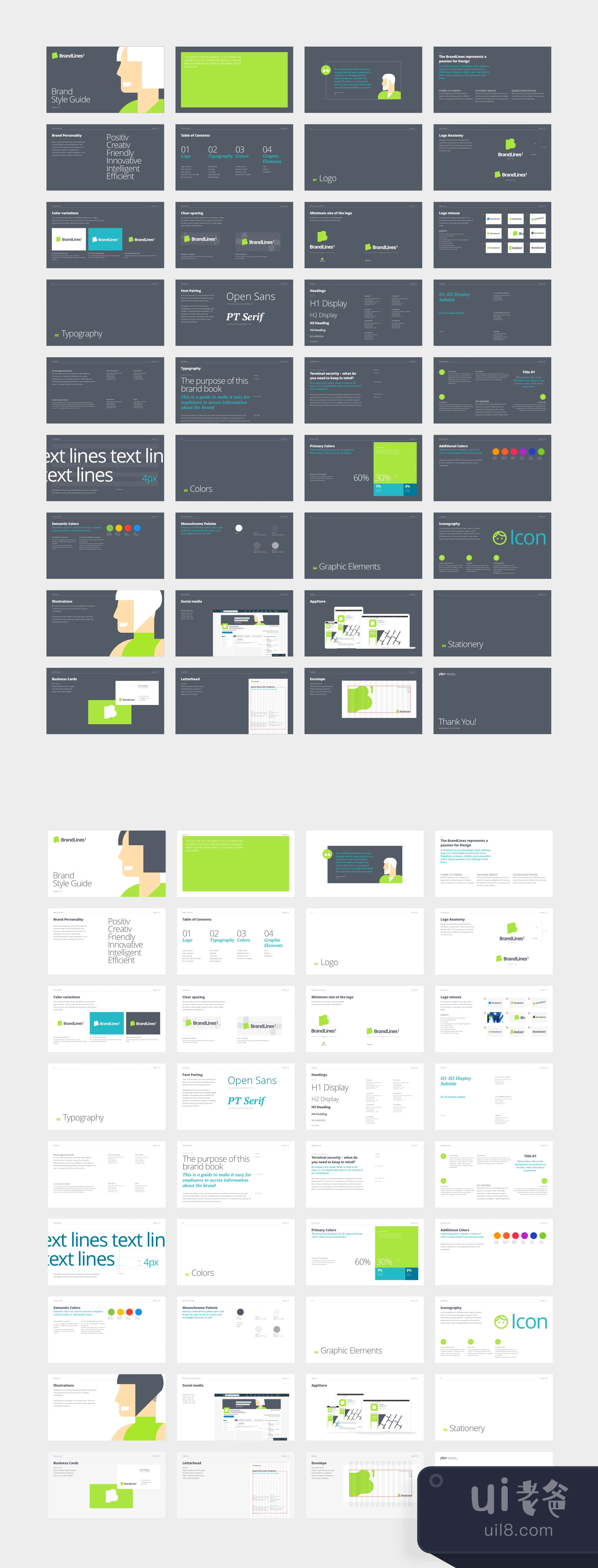 BrandLines是一个专业的品牌书和风格指南演示模板,帮助你加快品牌设计的无聊部分。