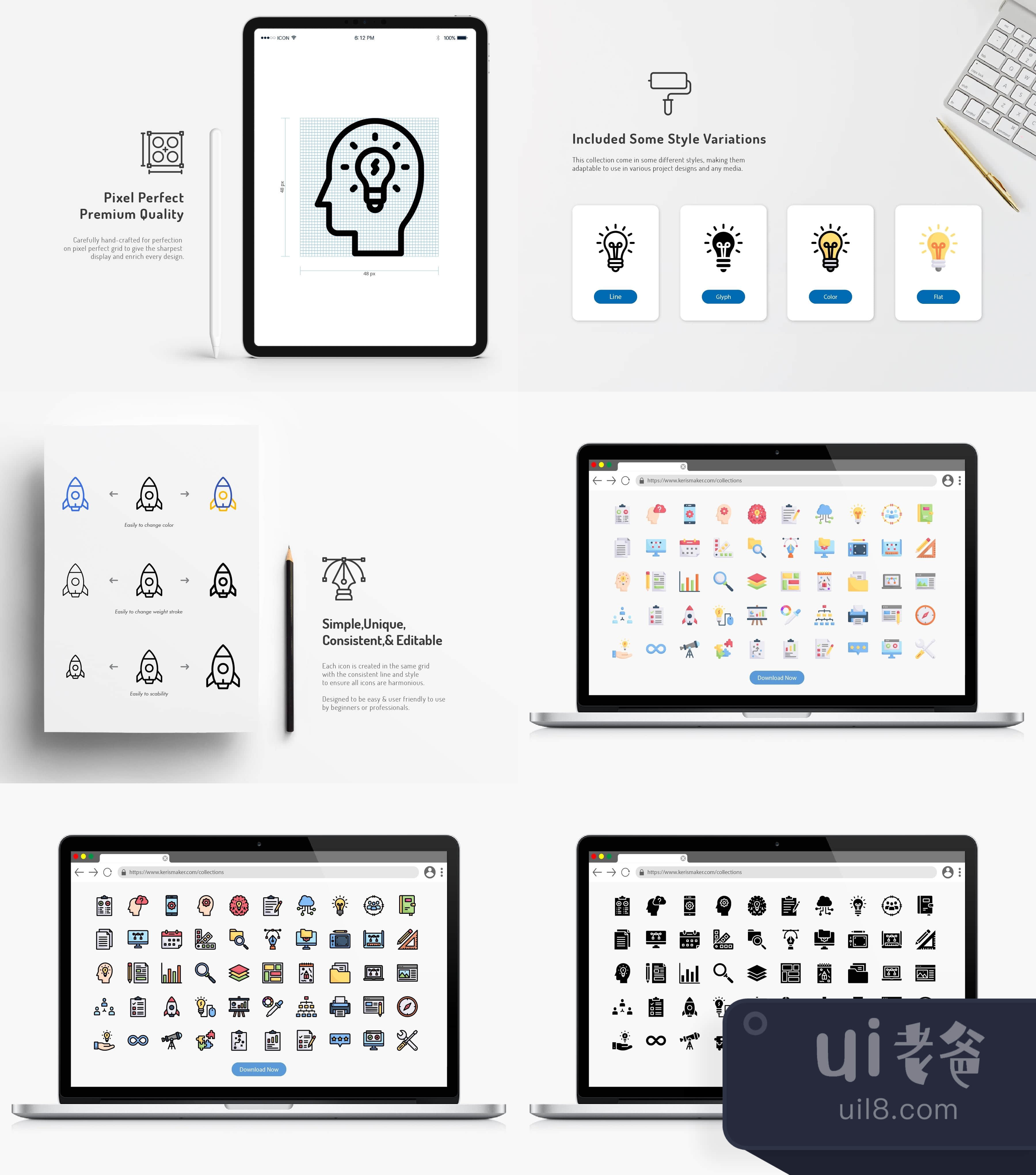 你可以根据你的需要编辑它,改变颜色和修改图标,如此简单。那么你还在等什么呢?现在就购买并开始使用这个超棒的图标吧