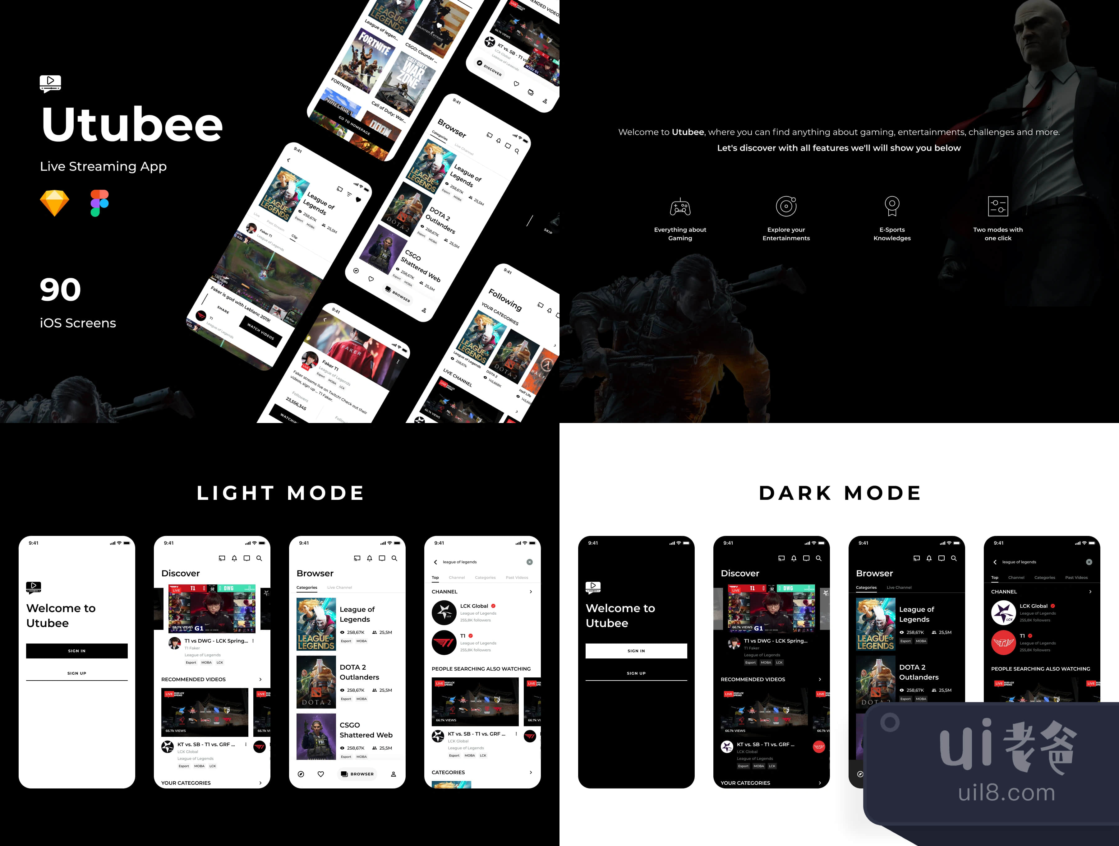 Utubee是一个优雅、现代和简约的流媒体直播应用UI套件,专门设计为适合最新的iOS、iPhone X和所有其他移动设备。除了主要专注于视频游戏直播,包括电竞比赛,Utubee还包括音乐直播节目、创意内容和现实生活内容。