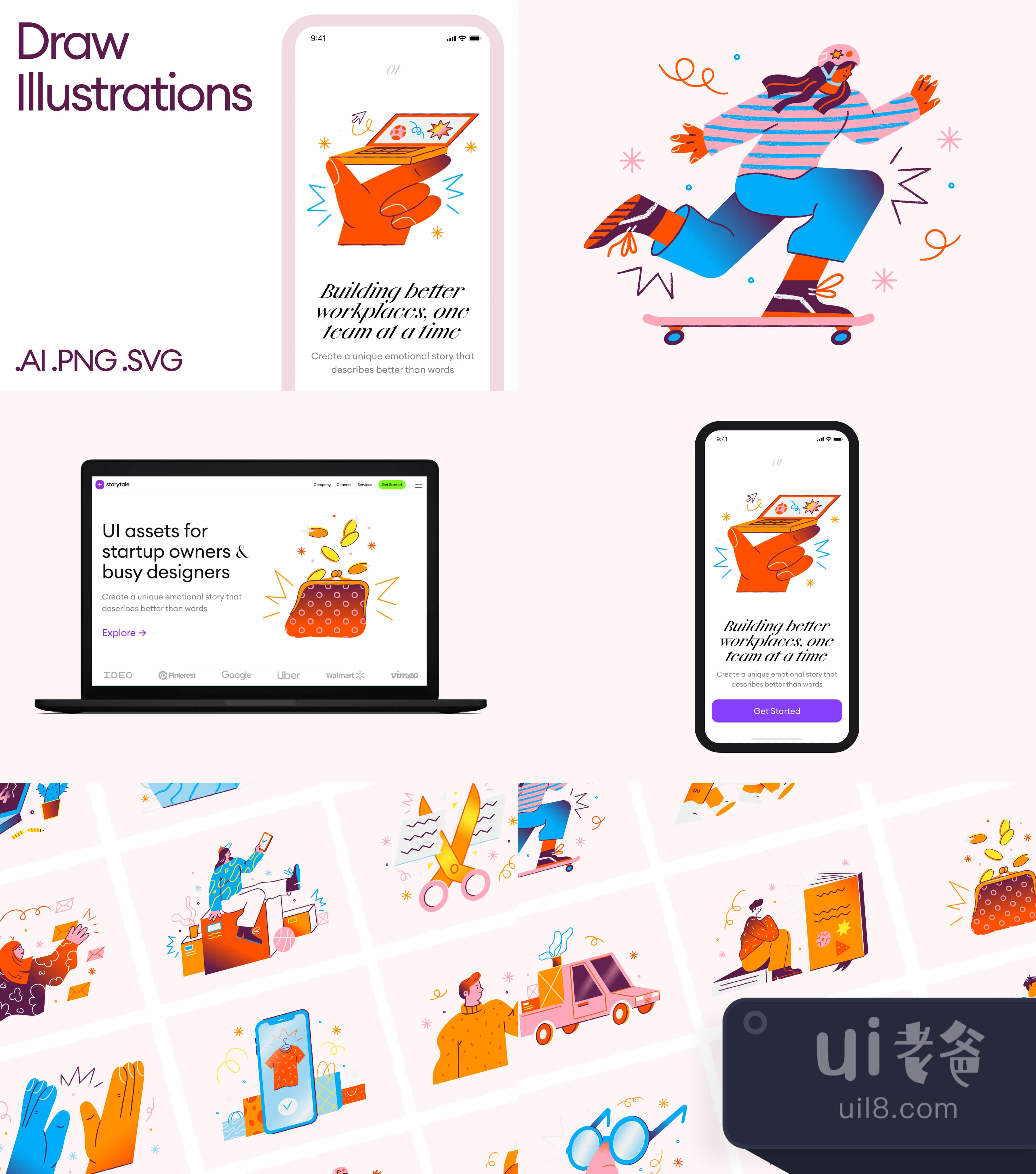Vesta是一个带有梯度的平面风格的彩色故事包。它们都是关于商业、科学、体育和教育。软件包包括20幅PNG、SVG和Ai格式的插图,可以成为你网站或应用程序的一部分。