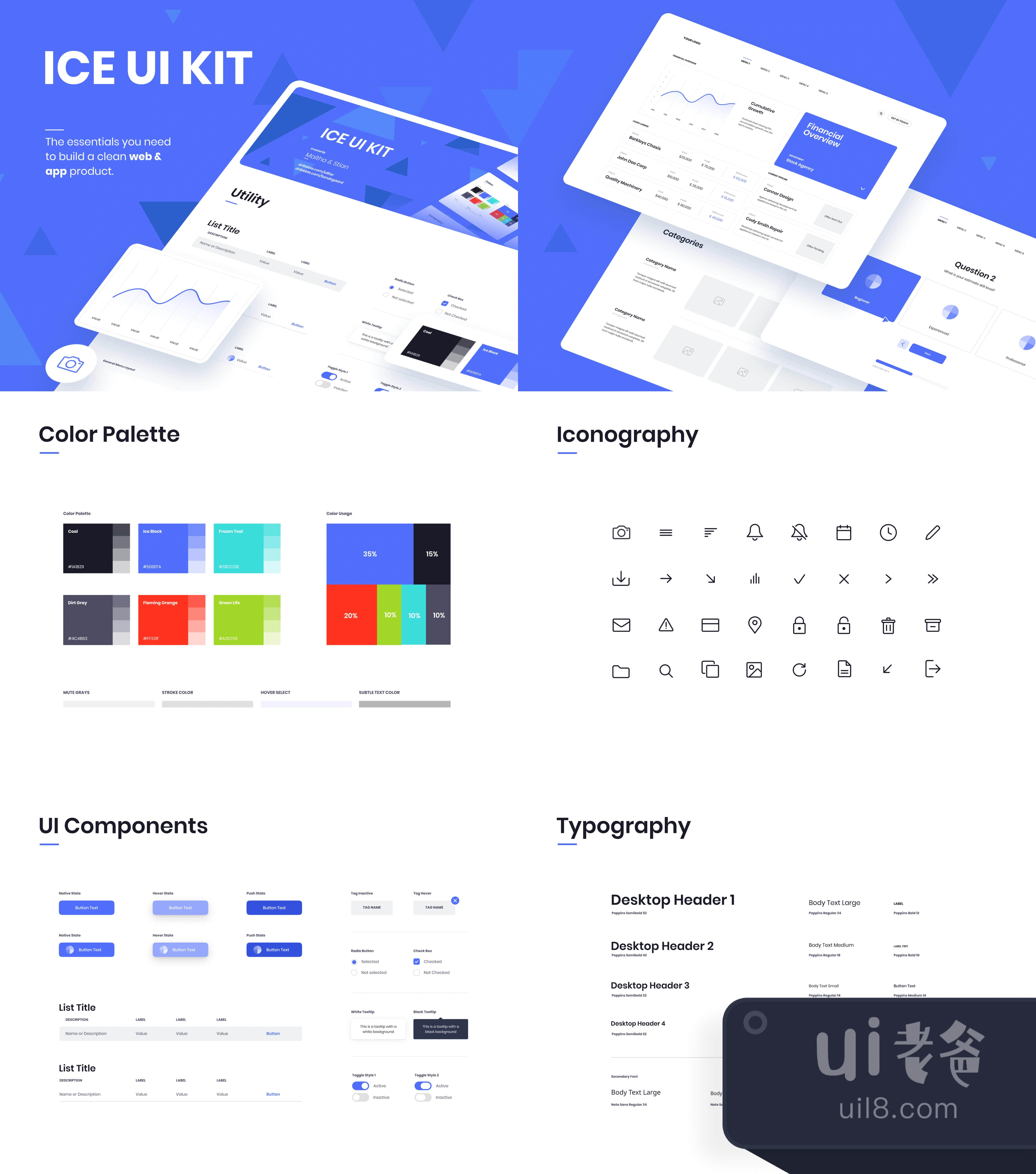 ICE UI is a flexible UI kit focusing on minimalism and letting the design elements speak for themselves. It contains the building blocks you need to build a clean and good user experience.