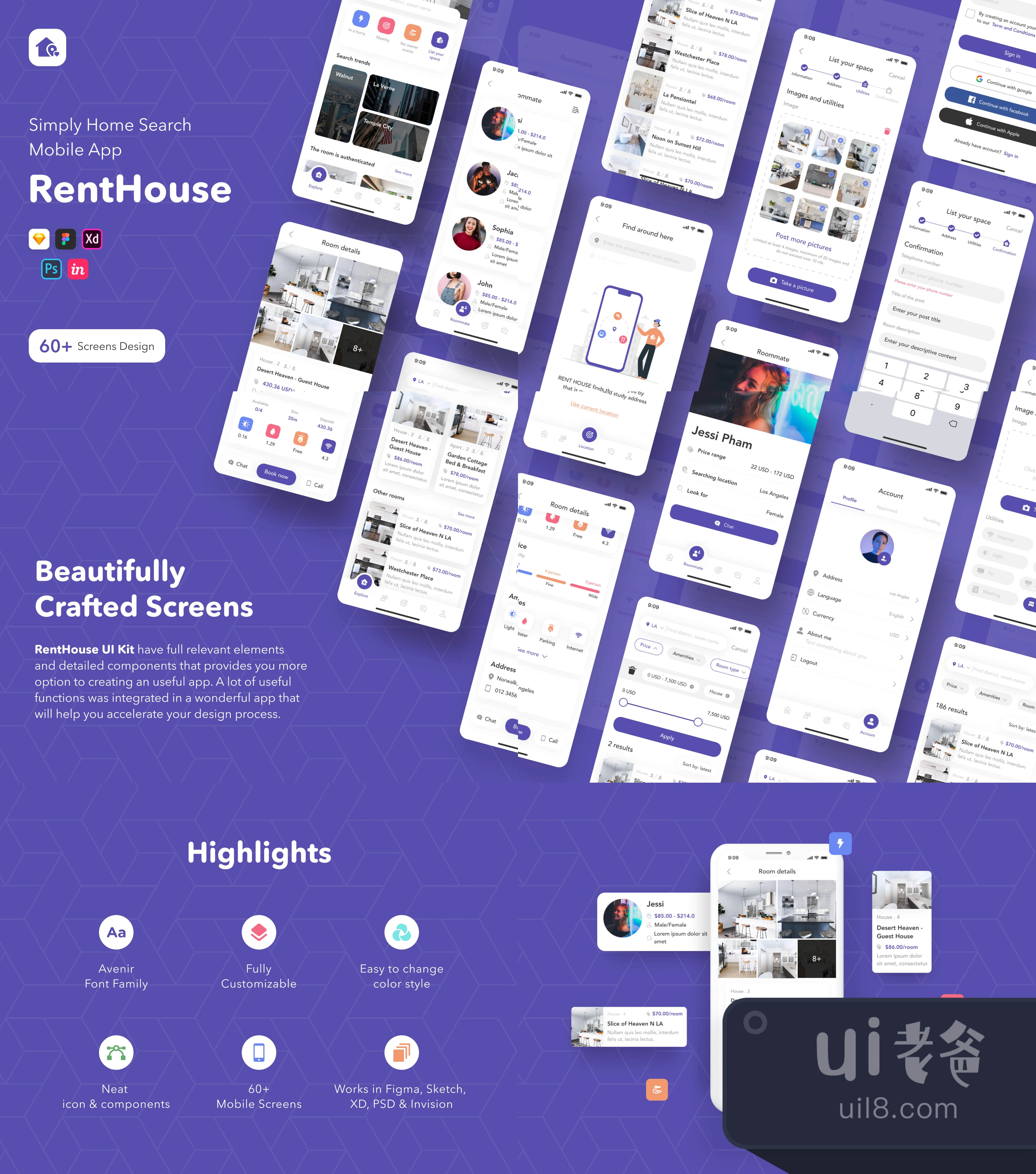 RentHouse - 简单的房屋搜索移动应用UI KIT (RentHouse - Simply