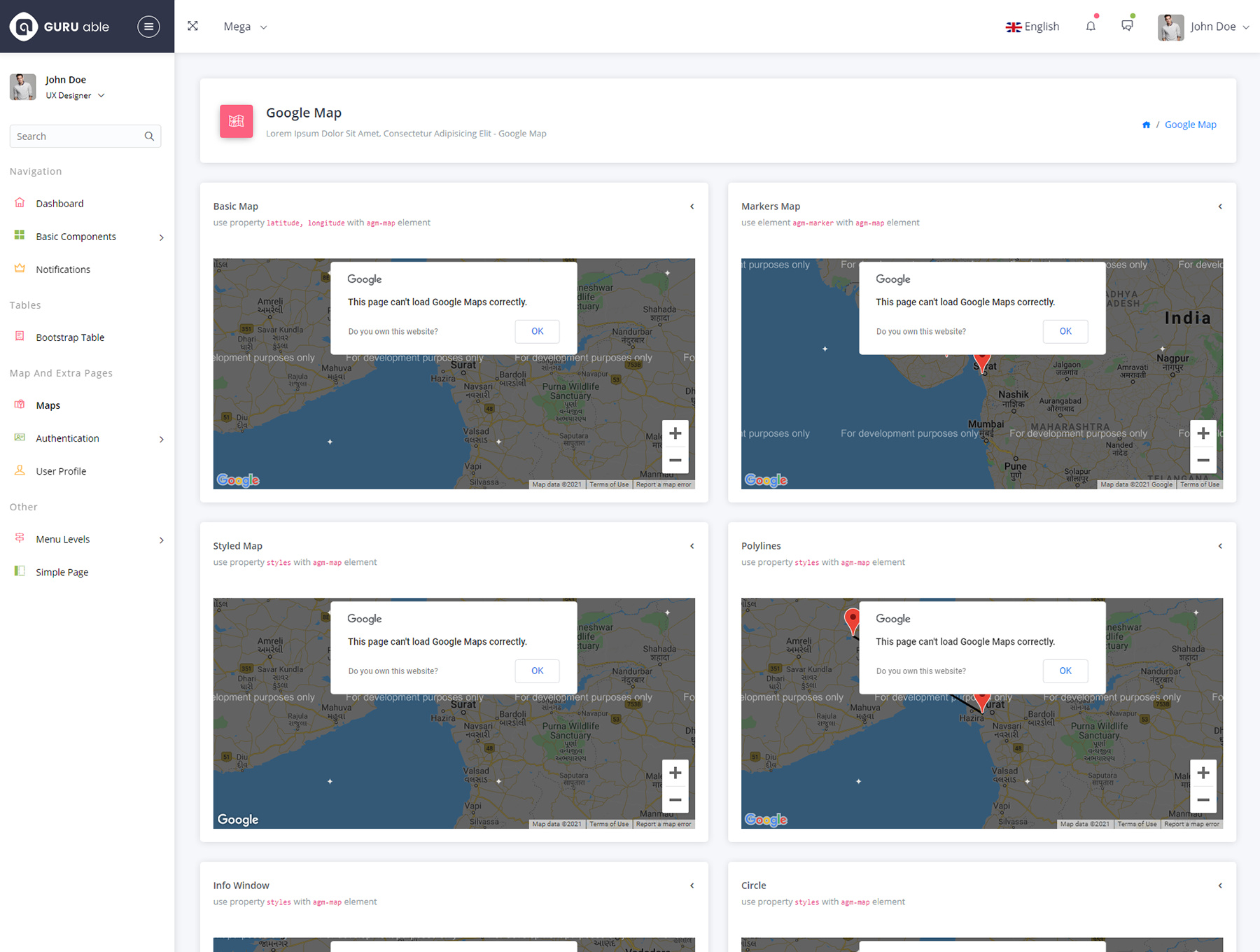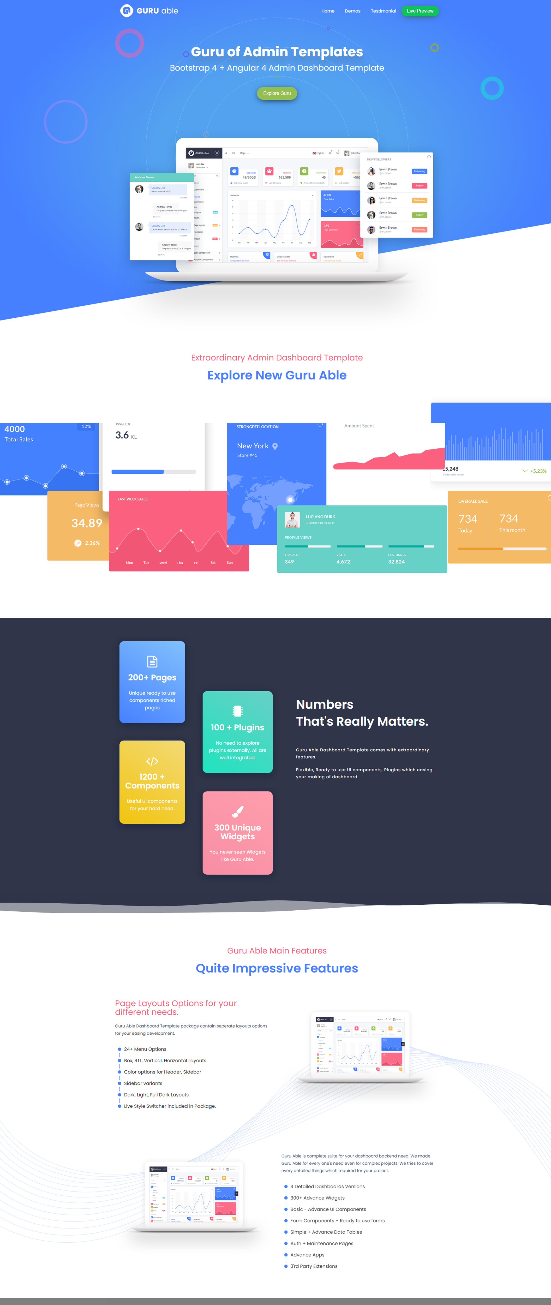It comes with Basic but useful UI components, advance components, auth pages, font icons, different form components, data tables, charts and maps. There are more features and variety of options available in Guru Able Angular premium Dashboard version. We have also developed Guru Able Admin Template with Bootstrap version of it. With their free and pro versions.