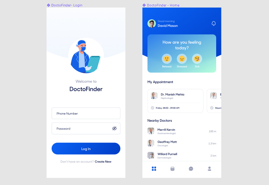 Here's a freebie designed in Figma. It's a Doctor Finder App concept by Tanvir Ahassan (https://www.behance.net/anik117) where you can find doctors nearby and manage appointments online. Let us know what do you think of it. Enjoy!