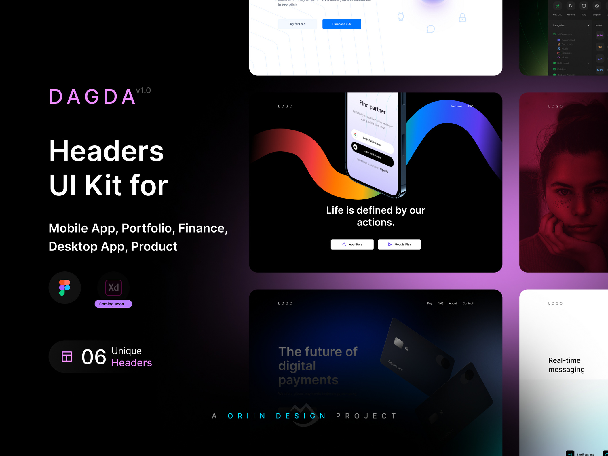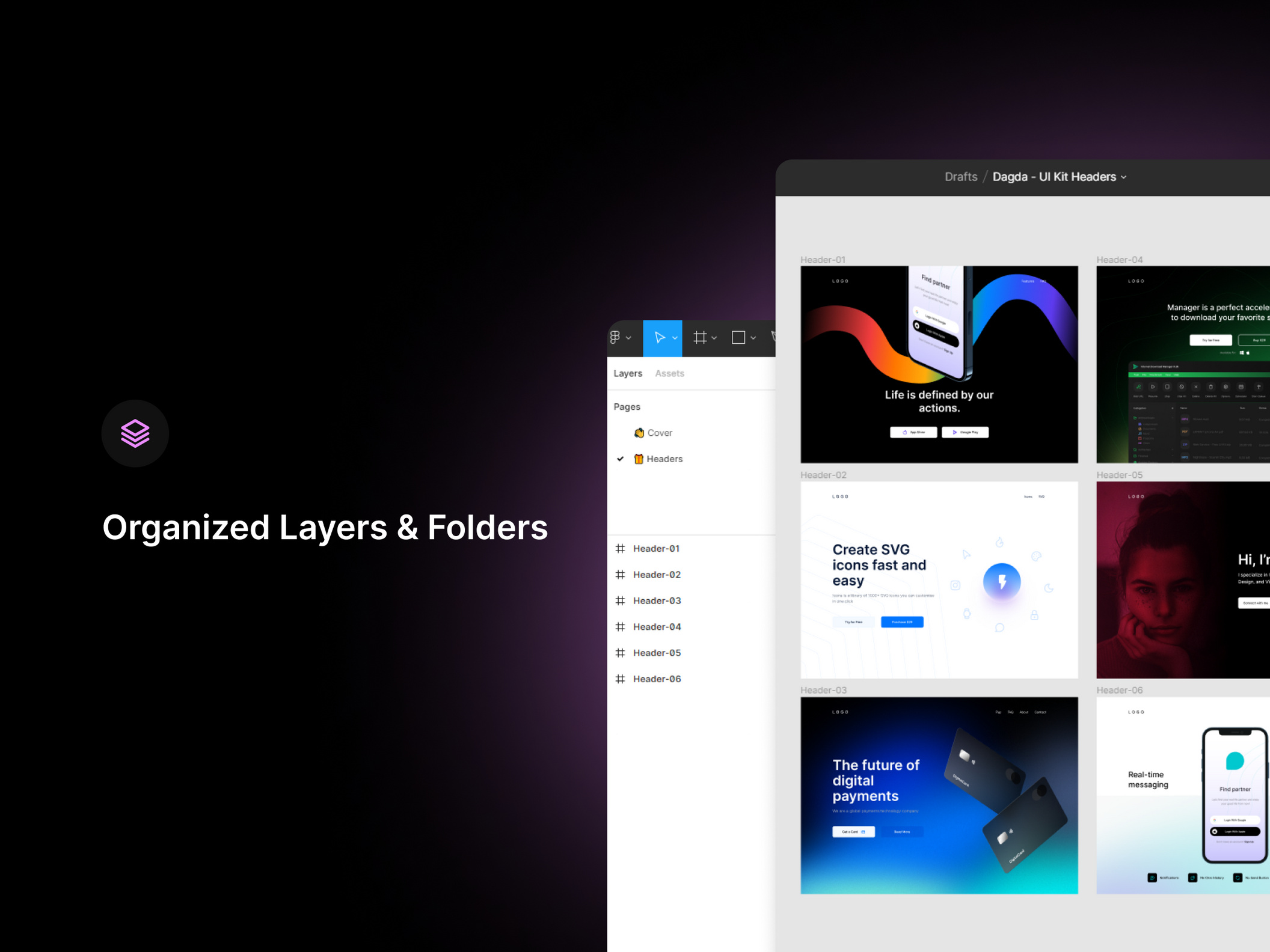 Dagda v1.0 is a pack of hero headers with a clean and modern design.