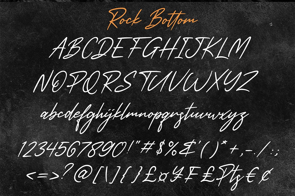 Rock Bottom Handwritten Font by Abas Creative (https://www.behance.net/abascreative) is a flowing handwritten font, described by an elegant touch, perfect for your favorite projects, fall in love with its incredibly distinct and timeless style and use it to create spectacular designs! It contains uppercase, lowercase, number, punctuation, symbols, and ligatures. Rock Bottom font is perfect for branding projects, logo, wedding designs, social media posts, advertisements, product packaging, product designs, label, photography, watermark, invitation, stationery, and any projects that need handwriting taste.