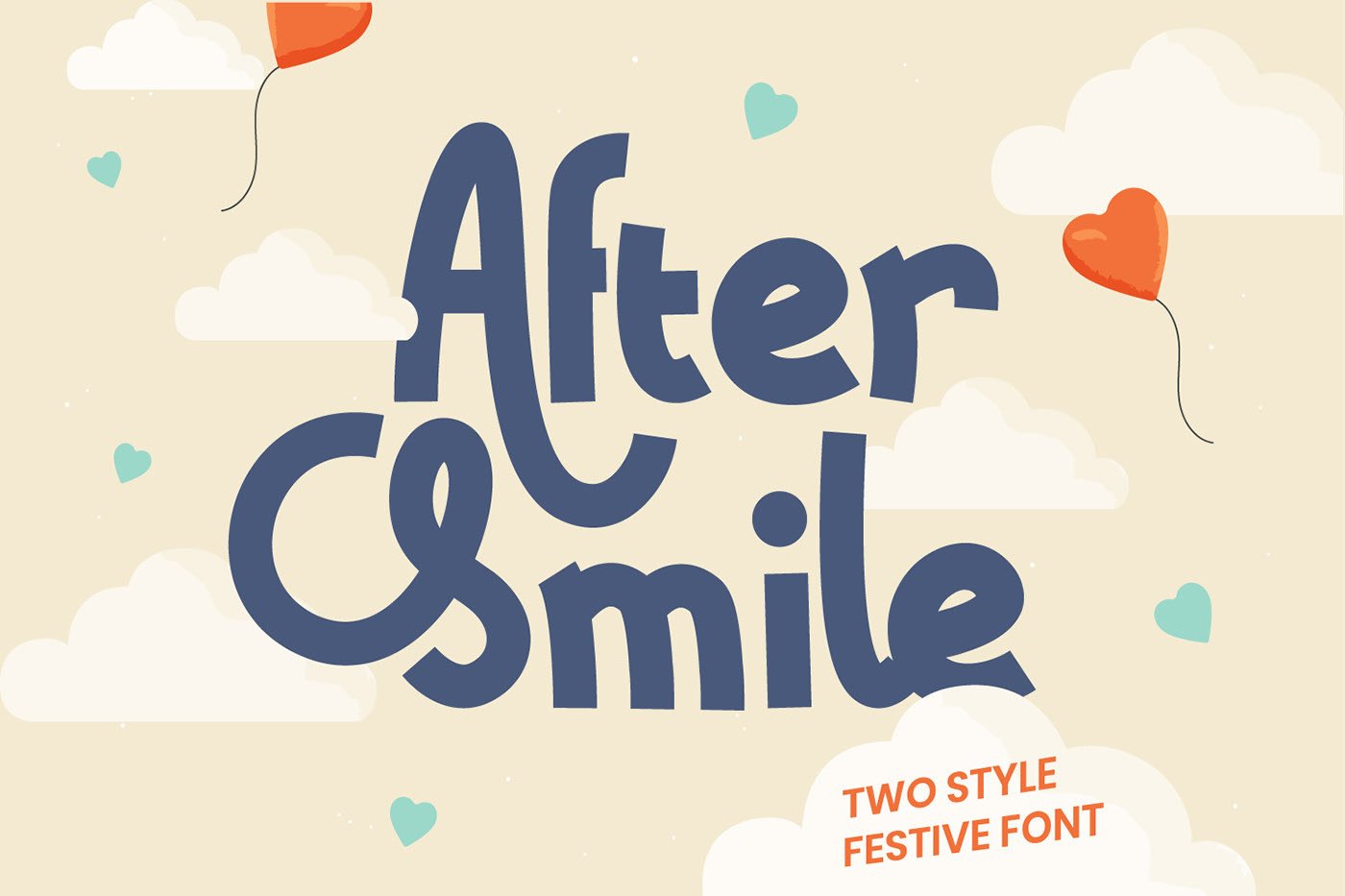 After Smile is a cute display font by Yudi Setiawan (https://www.behance.net/yudisetiawan). This gentle font will look gorgeous on a variety of design ideas. It will add a jolly and sweet touch to each of your projects!