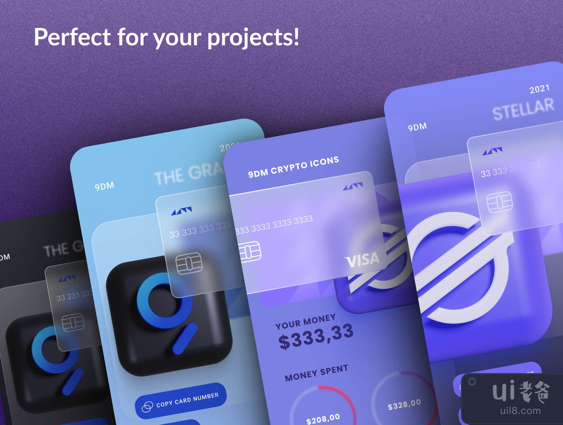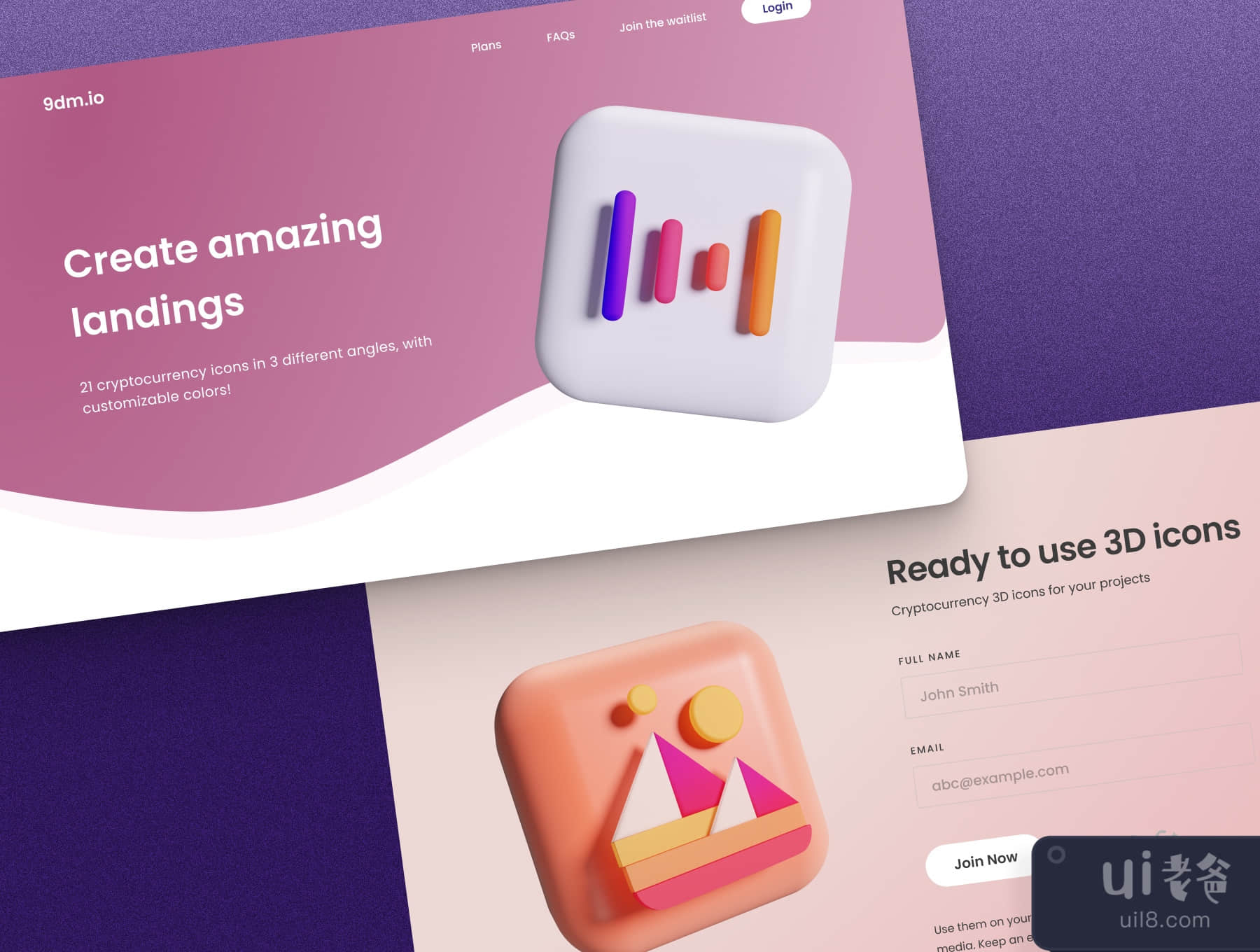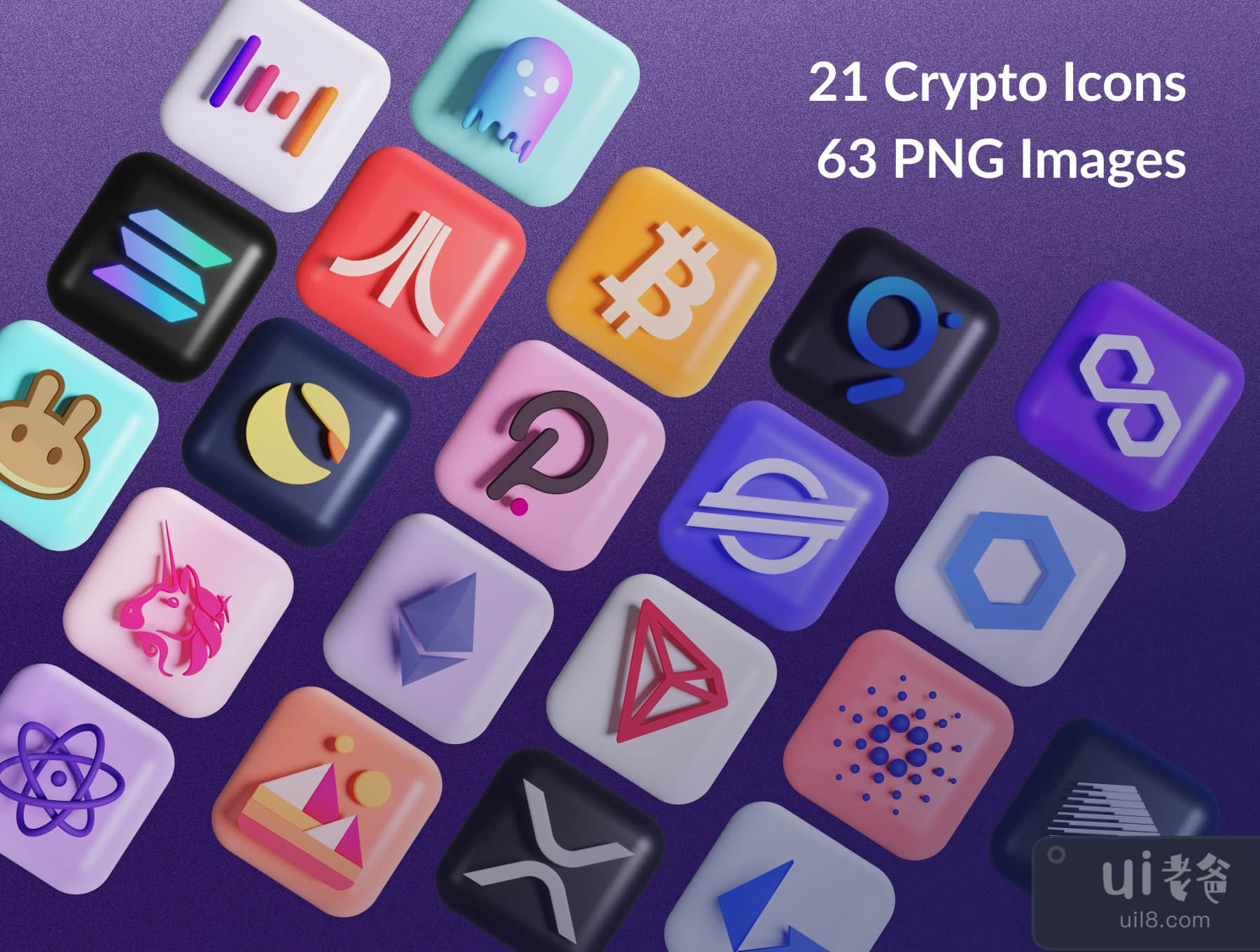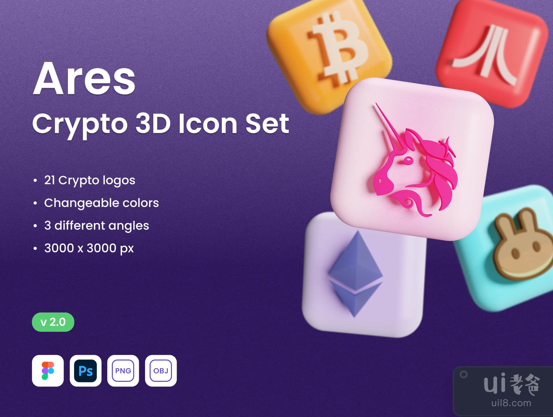 Ares是一个由9dm制作的加密货币3D图标包,供你在你的项目中使用。在第二卷中,从21个优质的加密货币图标中选择3个不同的角度,随心所欲地改变颜色。