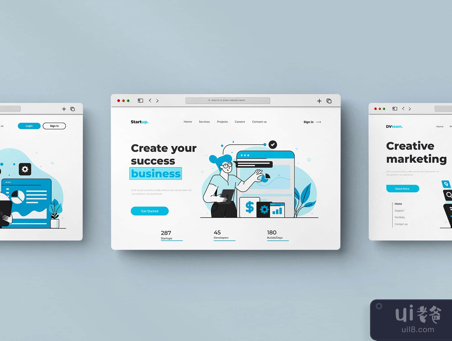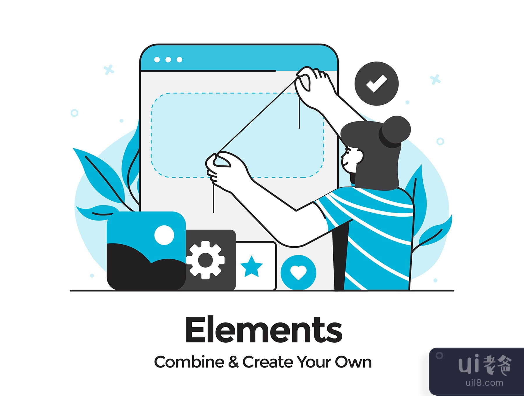 *由于采用了矢量形状和非常有组织的图层,概念很容易编辑、定制和调整大小。