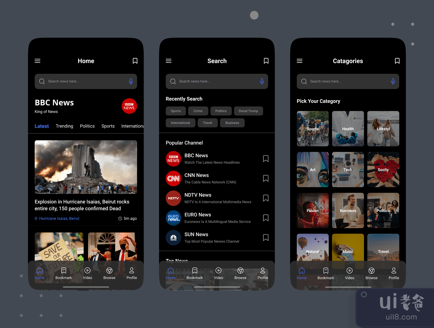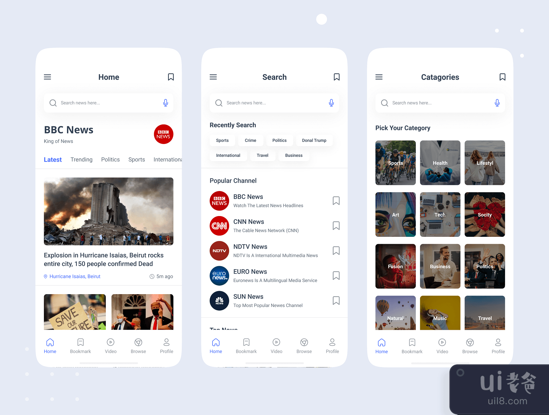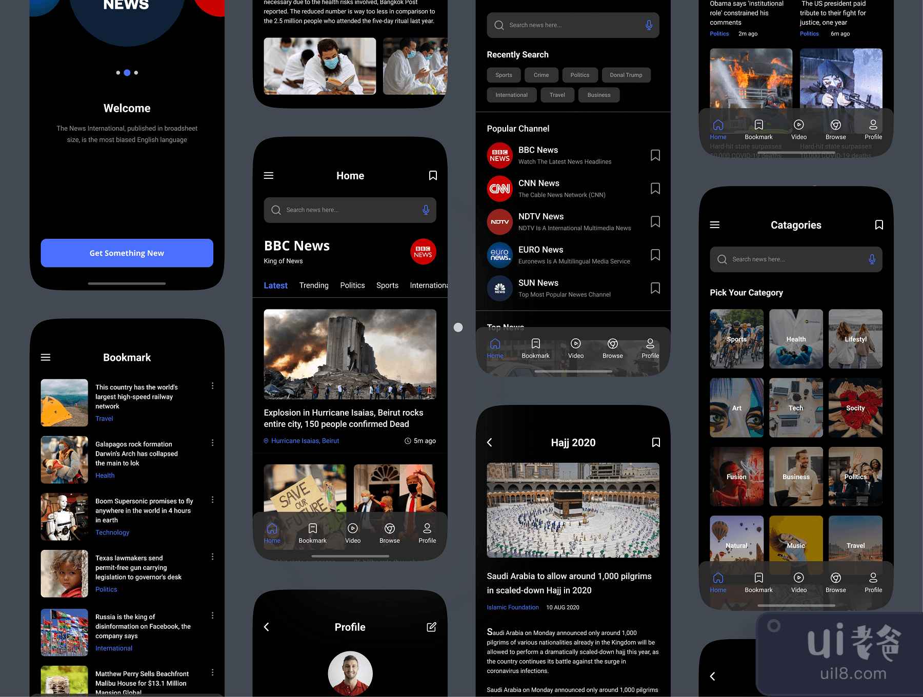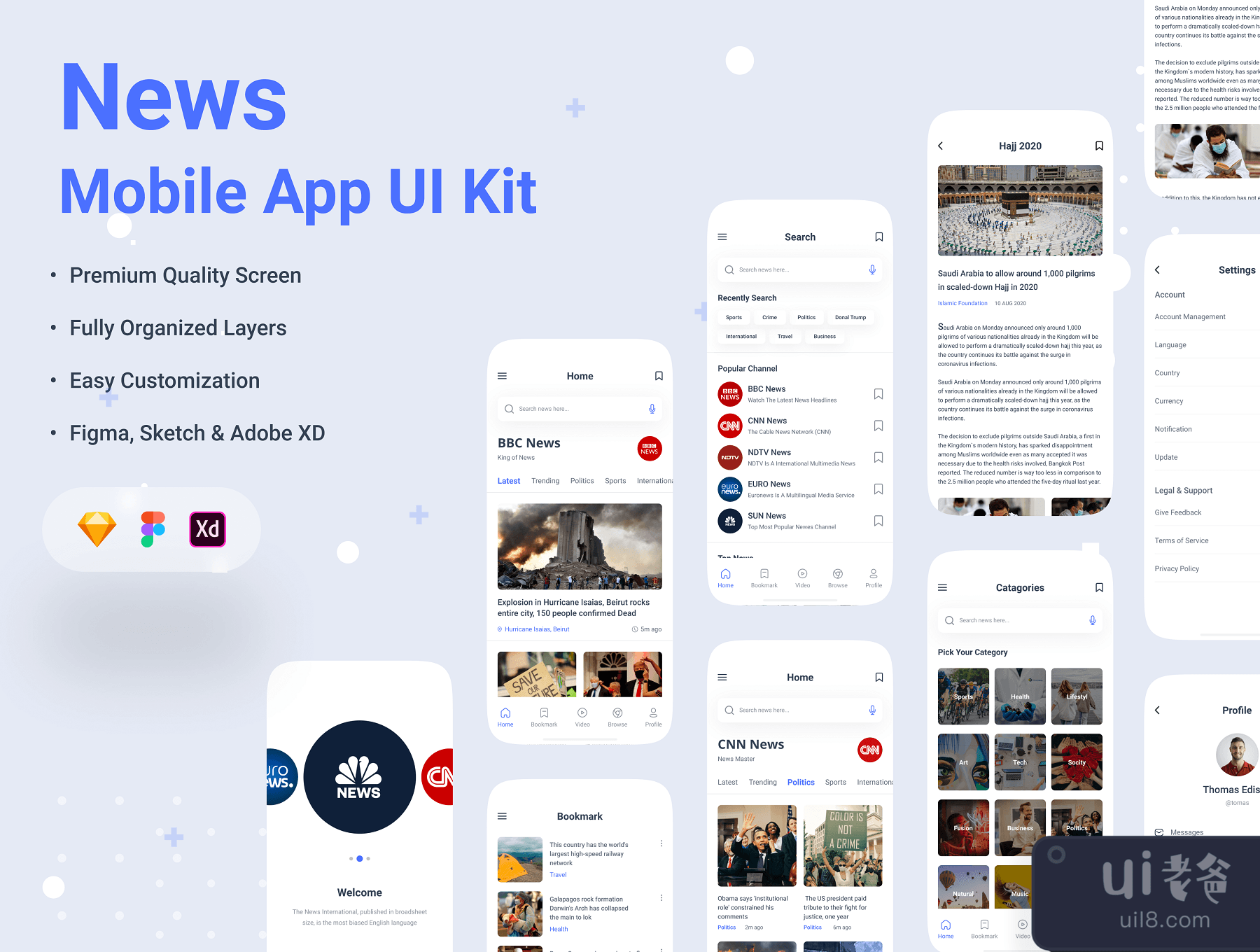 新闻应用UI套件 - Figma (News App UI kit - Figma)