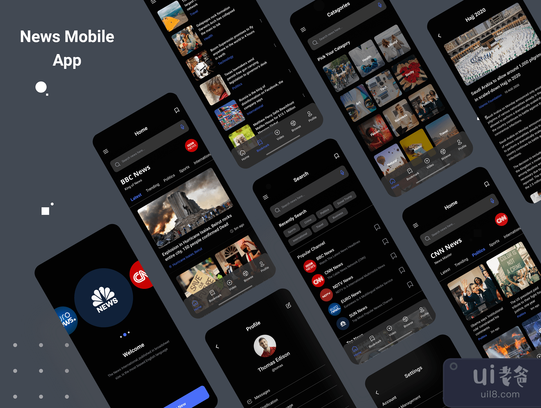 唏嘘 介绍新闻移动应用程序,其布局、颜色和图形组合都很新鲜、干净。用爱精心制作,充满激情❤。这个现代设计模板易于定制,使您更容易设计您的下一个应用程序、项目,并加快您的设计工作流程。 兼容性 - 斐济 - 素描 - Adobe XD 这款新闻应用设计将是您的最佳选择!