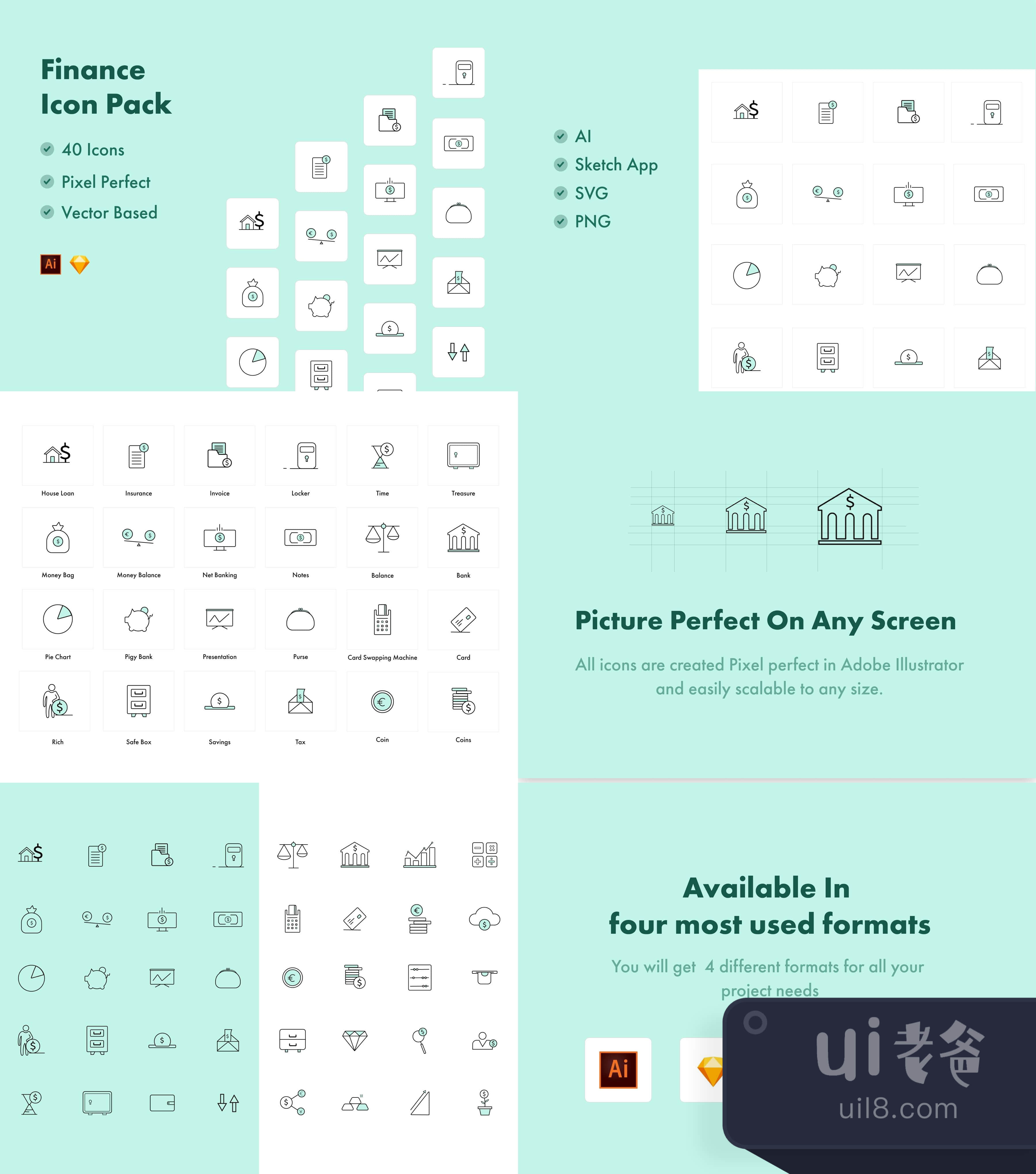 For Fintech, Beautiful collection of 40 icons with black outline and sharp shapes. It is crafted in order to make your website more impressive and can sell your ideas to clients.