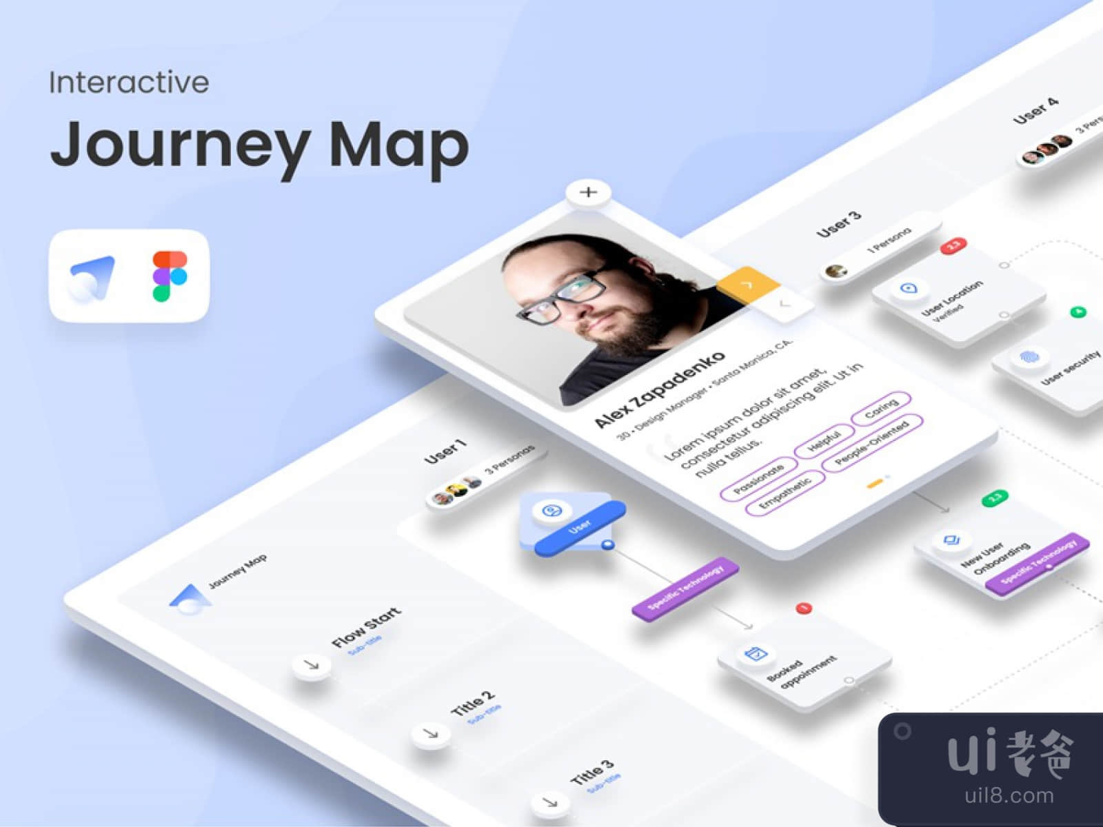 特点1 Figma 文件完全可定制交互元素随意使用这个免费赠品为您的个人项目!由 Adrian Balkwill 制作的 Figma 交互式旅程地图。享受 Figma 的这个 UI 免费赠品!超级好用!制作您自己的交互式地图!来自作者“Meet the Interactive Journey Map,使用 Figma 的原型工具对旅程地图进行全新尝试。可扩展的迷你用户角色和可点击的用户流元素使您能够更深入地了解细节。在此处查看 Figma 社区提供的原型,复制文件并立即开始免费使用它。用于创建此免费赠品的工具是 Figma 和 Adobe XD。有用的提示:如果许可证未知,通常是因为他们忘记明确提及;不是因为他们小气。在将它用于商业项目之前,您可以很好地询问 Adrian Balkwill,他们可能会允许您使用它。