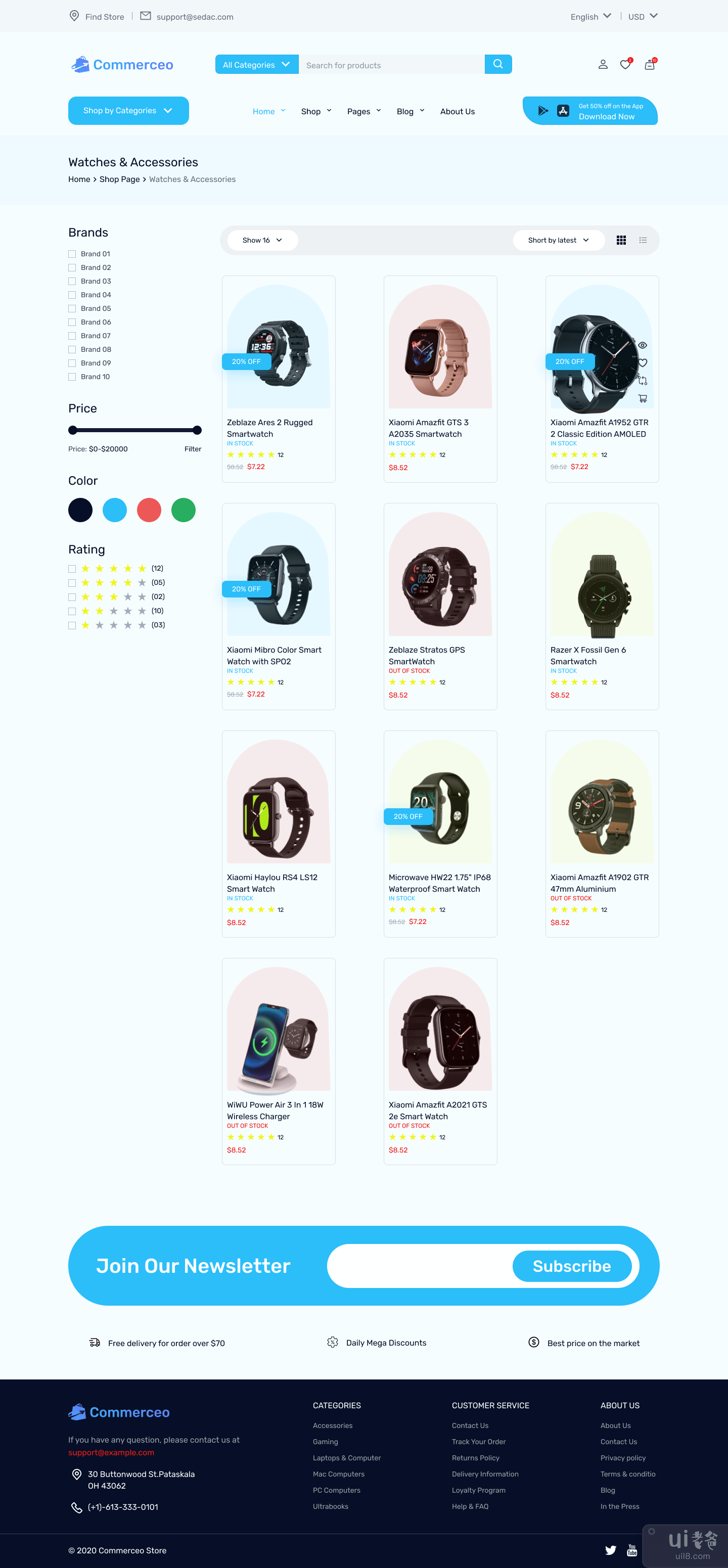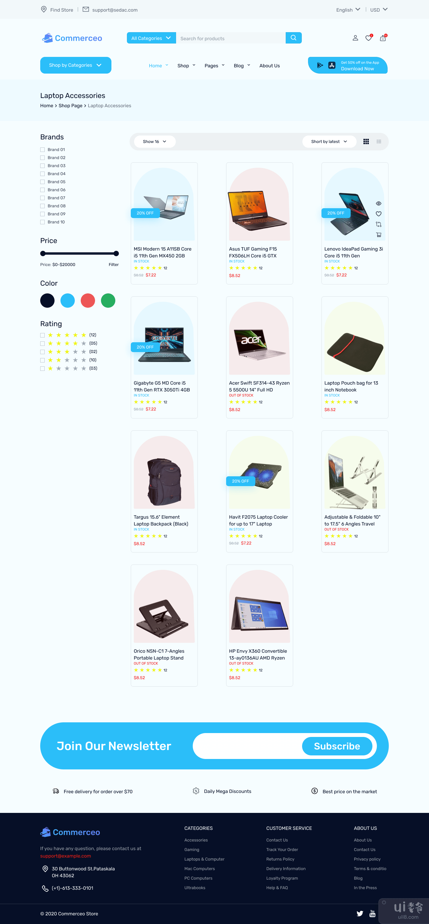 Commerceo-电子商务 Figma 模板。它可以很容易地定制以满足您的愿望。只需更改文本、图像和颜色即可获取您的网站。所有图像仅用于演示提案。它们不包含在下载包中。
