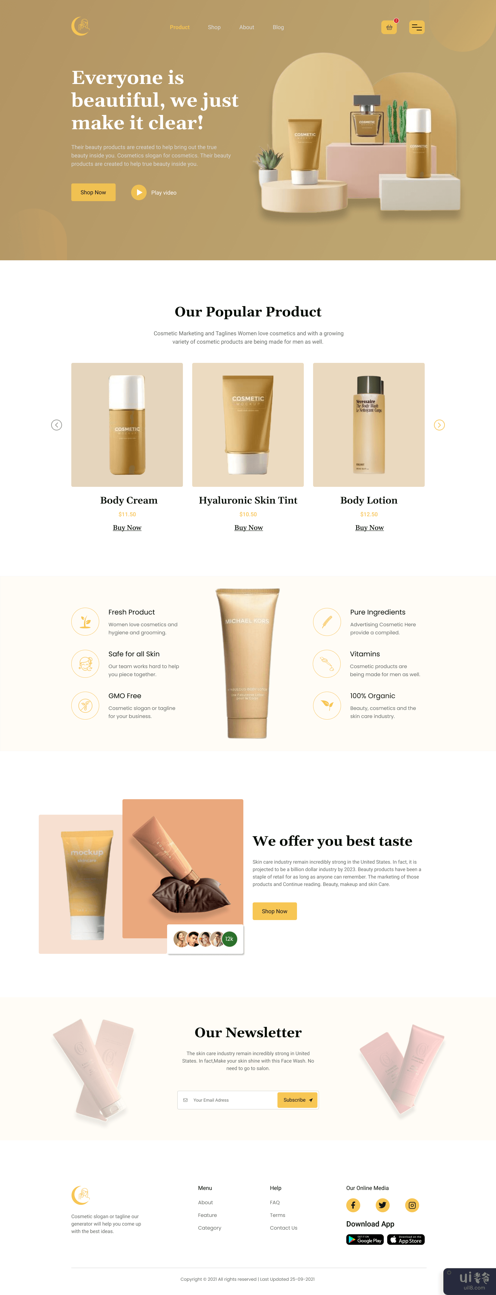 化妆品登陆页面 Ui 设计。(Cosmetic Product Landing Page Ui Design.)