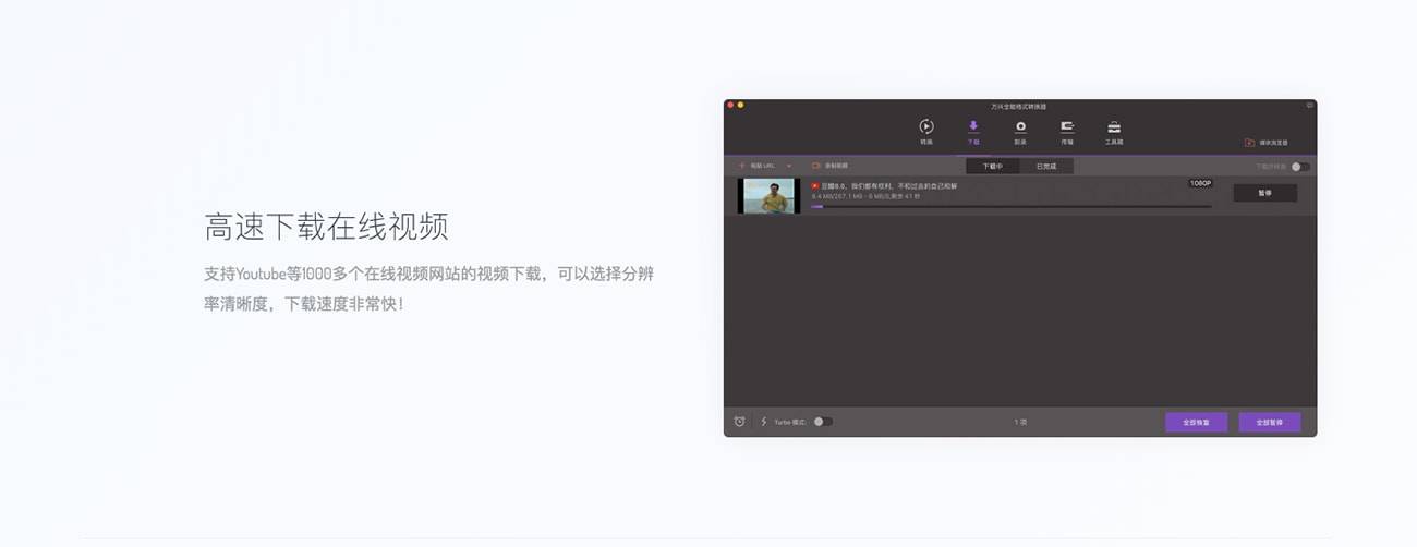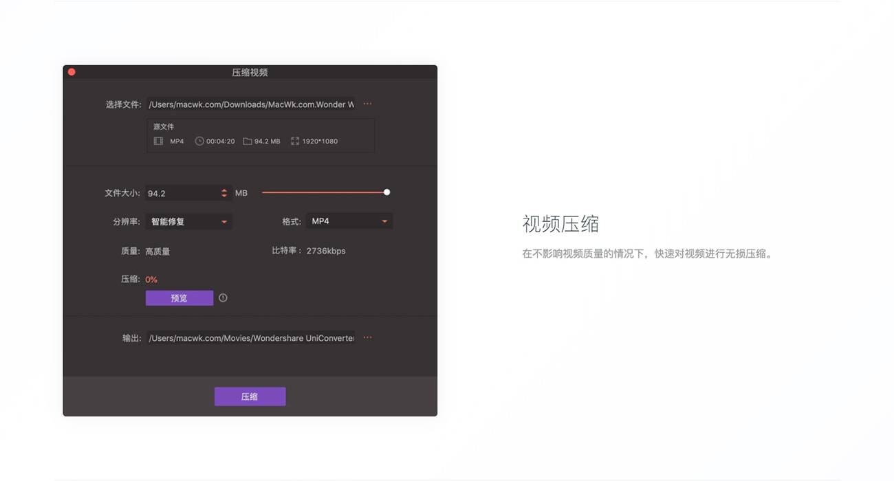 Wondershare UniConverter for Mac版是一款全能的视频转换工具。它的中文名字叫做万兴全能格式转换器,虽然名字叫转换器,但是它的功能却不限于视频格式转换,还包括在线视频下载(支持youtube等1000多个在线视频网站,不过基本上只支持国外的)、光盘刻录、传输文件到iOS设备(iPhone,iPad,iPod Touch)。