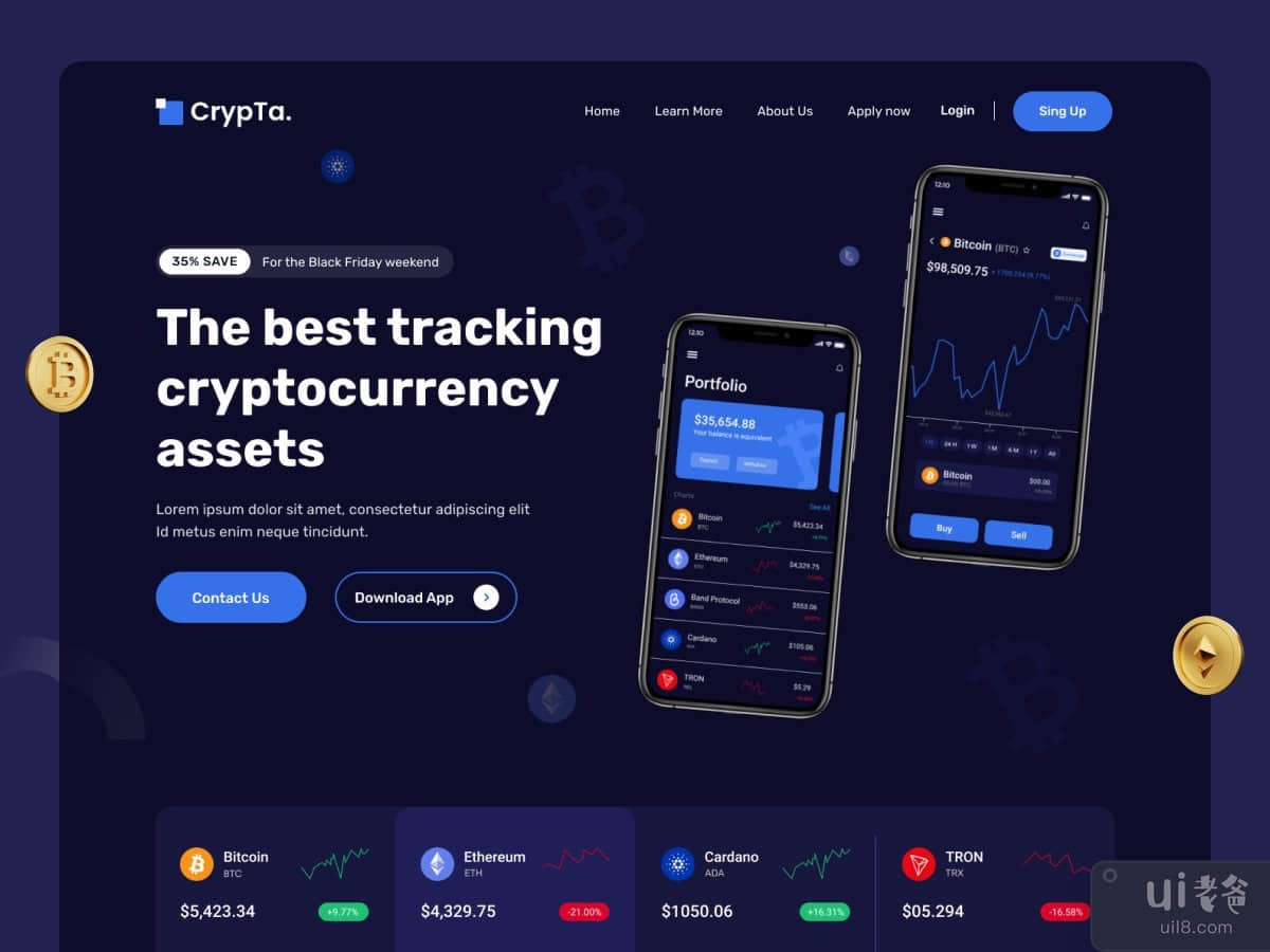 加密跟踪器应用登陆页面(Crypto tracker app landing page)