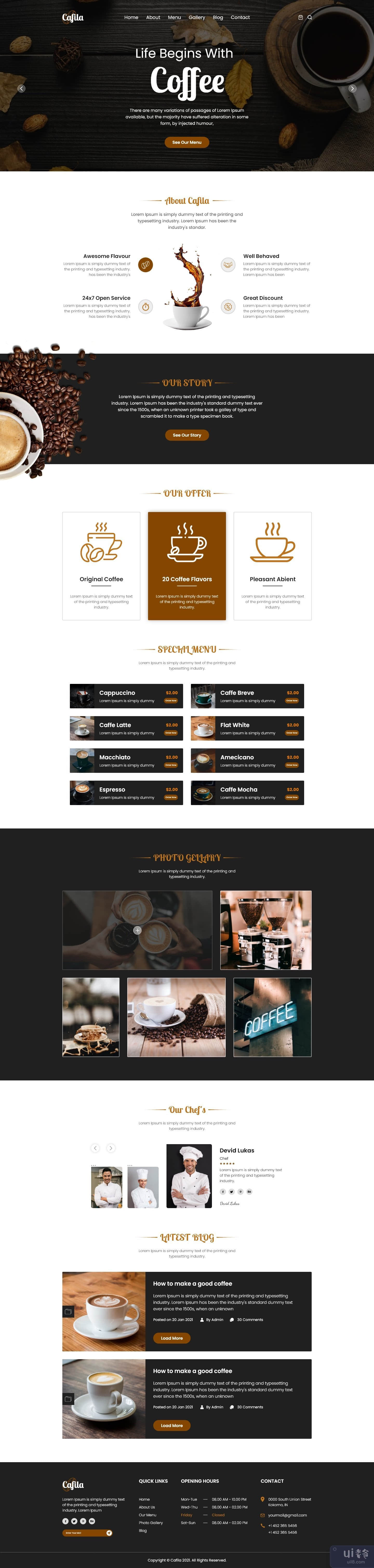 如果您正在寻找新的登陆页面模板来展示您的产品或新版本,请查看我们的咖啡店 Web 模板。如果您想向订阅者展示您令人兴奋的新产品,这款咖啡店 Web 模板非常适合其简洁明了的布局和设计。