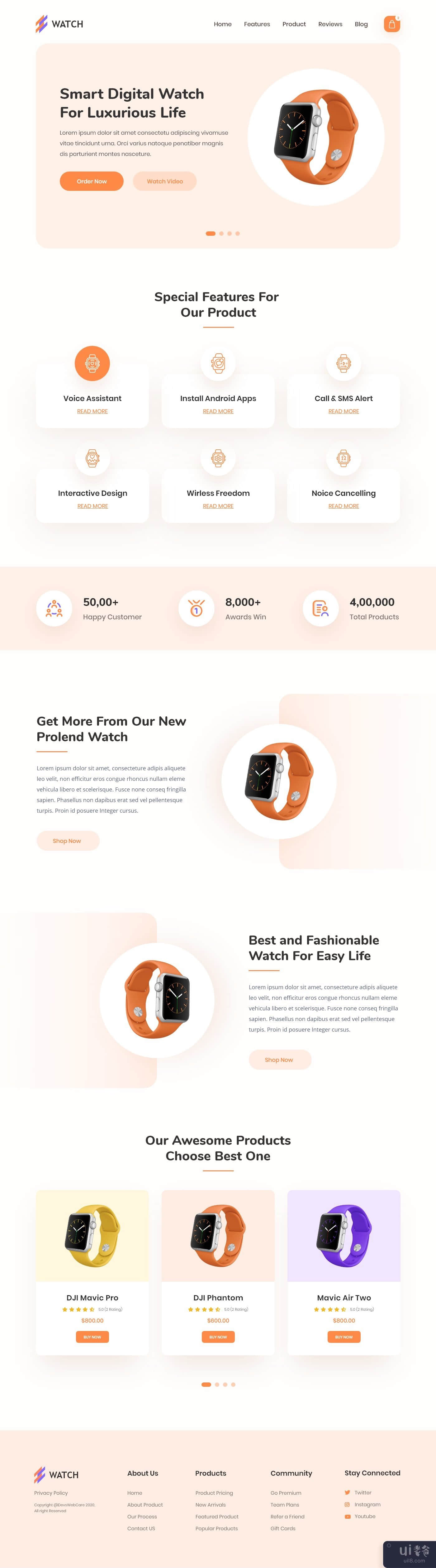 大家好!这是我的另一个作品,这是Watch Product Landing Page特点: