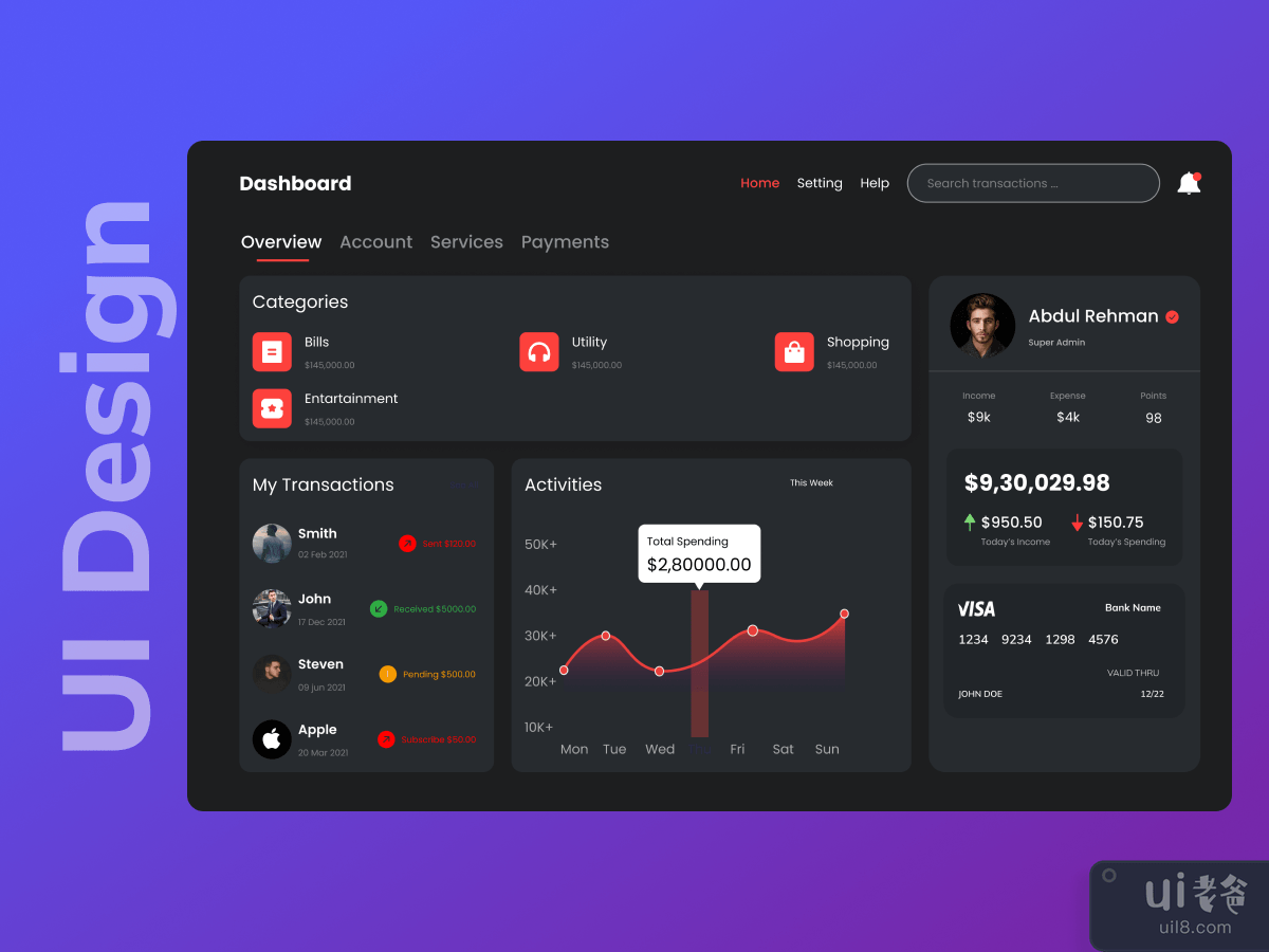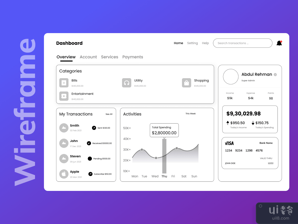 大家好👋我们想出了最好的极简版本 财务预算仪表板设计模板。画面采用 figma 最新版本设计。希望你真的会喜欢这个设计,如果想获得更多灵感,你可以查看我们的 YouTube 频道。与我合作,为移动和网站应用程序设计更有趣的 ui ux 设计。