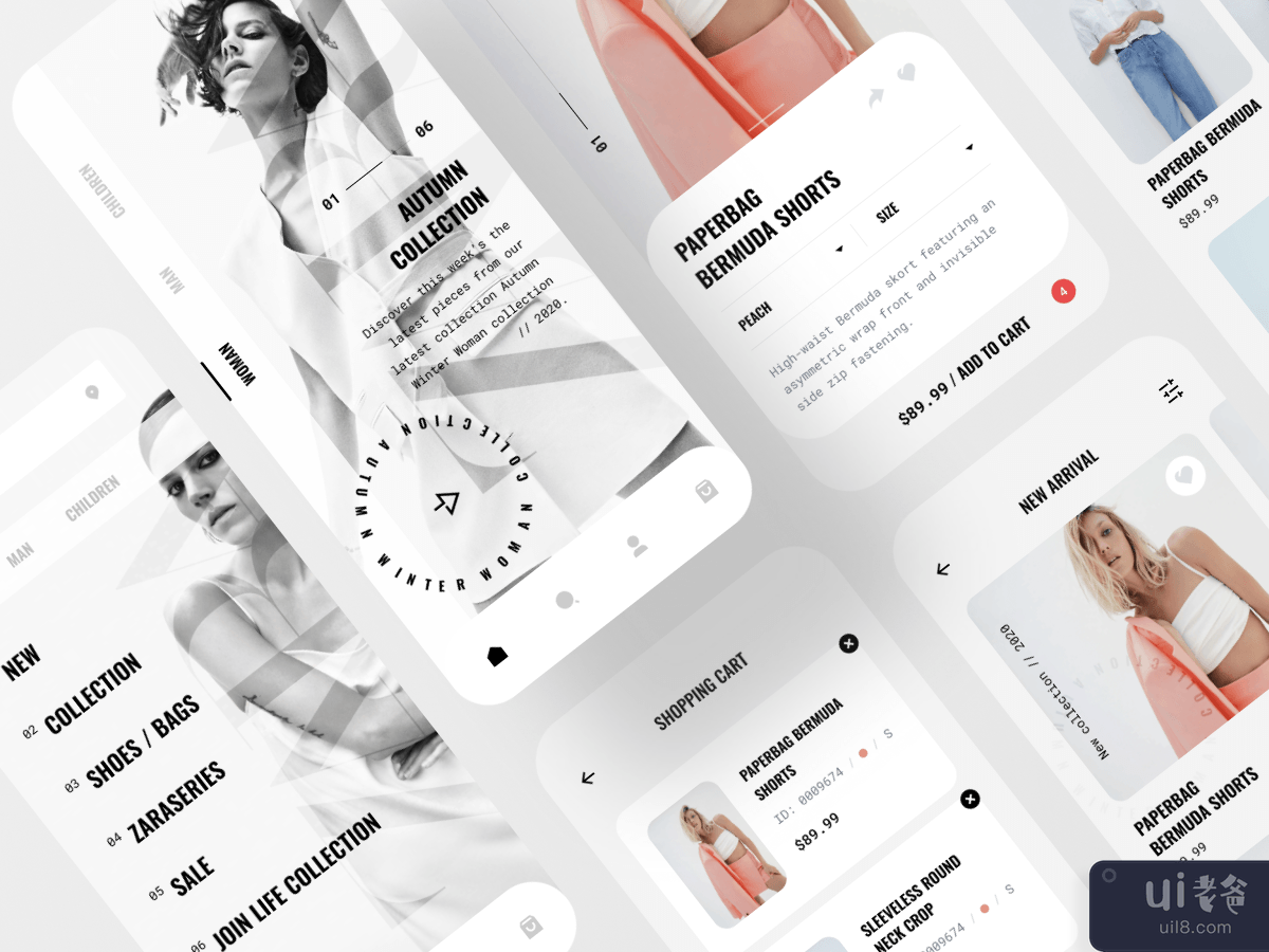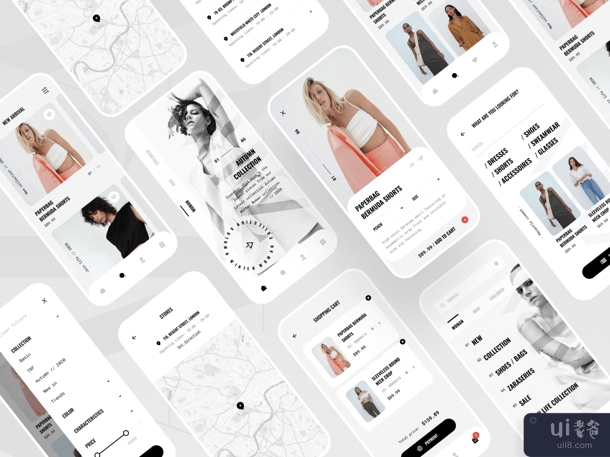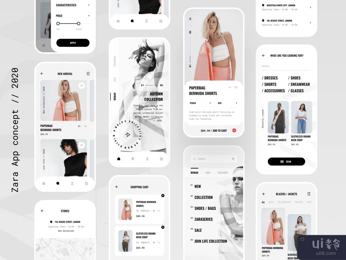 Zara 移动应用是一个时尚商店移动应用的设计理念。这里收集、重新思考并详细制定了线下销售品牌服装应用程序的主要屏幕。源文件在Figma中准备。