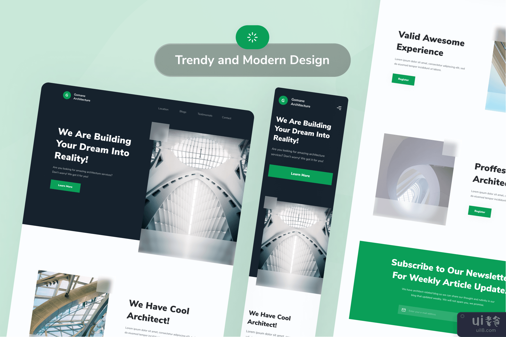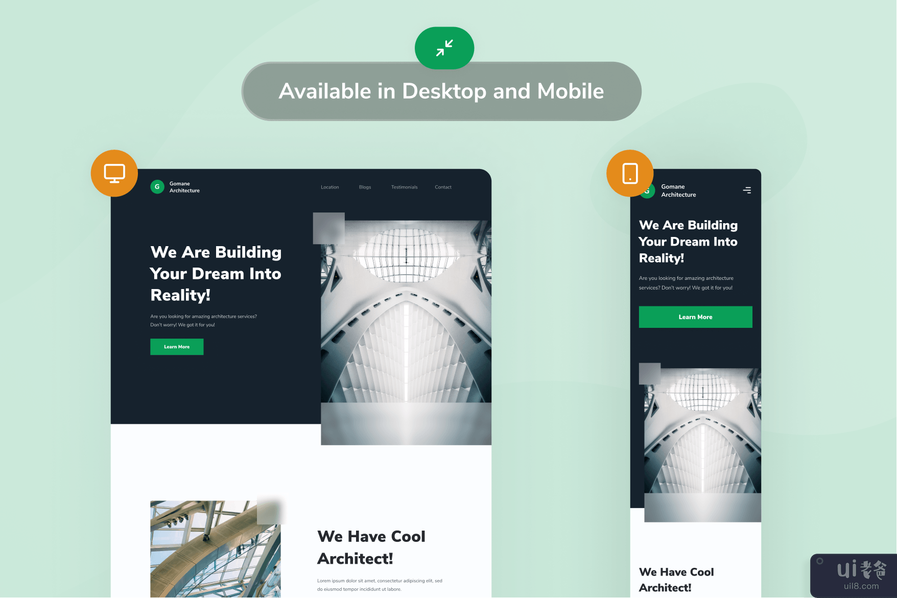 Hi there! Here is the Architecture landing page with fully responsive design ready to kickstart your design process!Features:- Fully Responsive Design- Well organized layers- Available in desktop version and mobile version- Free fonts used