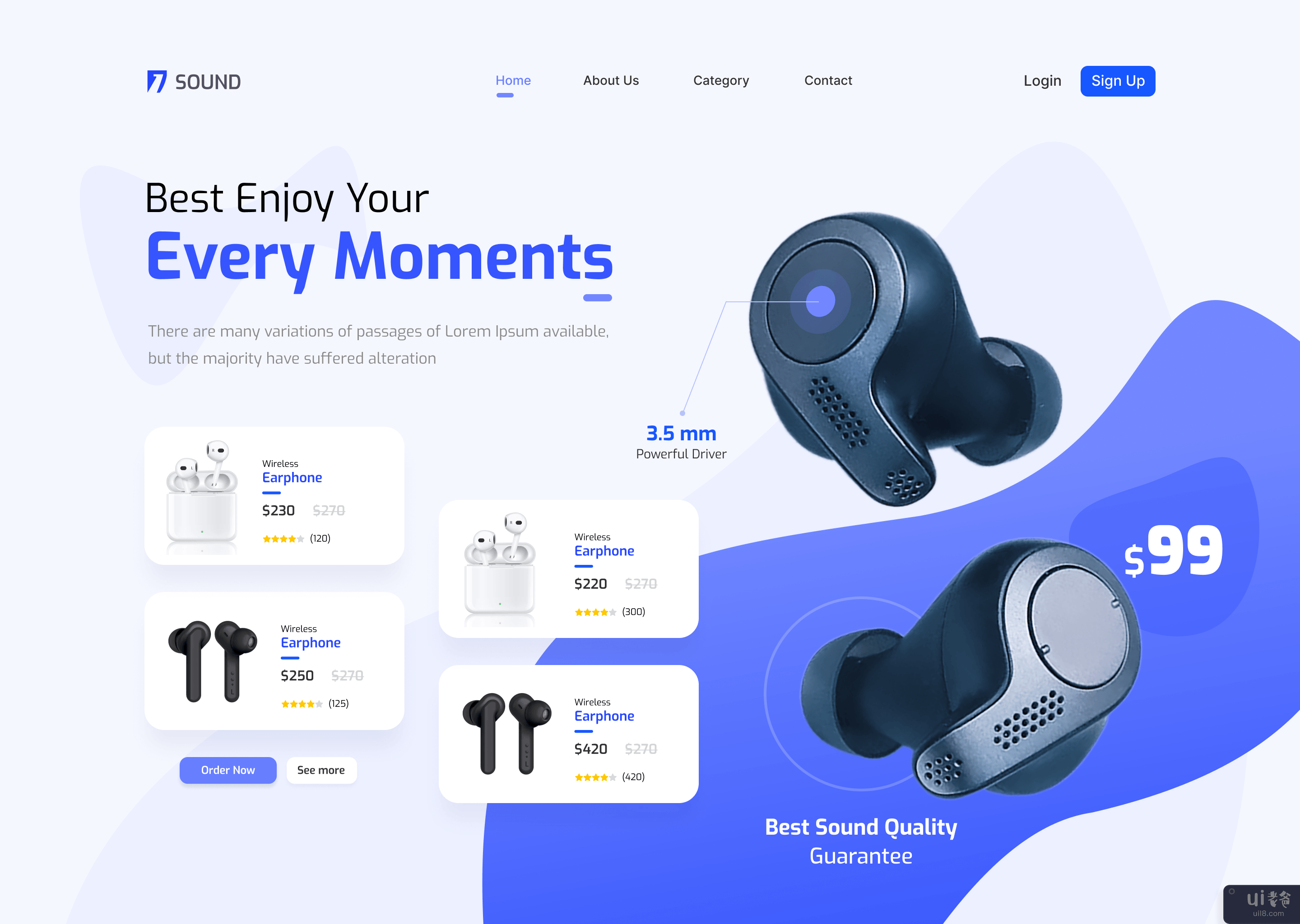音乐无线耳机(TWS)促销销售模板登陆页面主题(Music wireless headphone (TWS) Promotional sale template landing page theme)