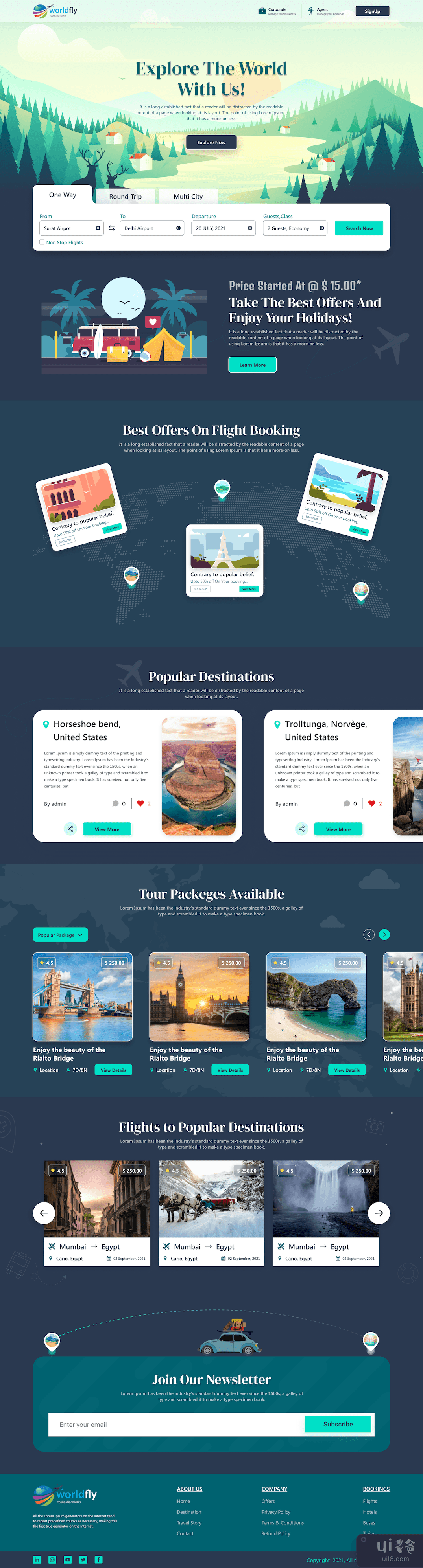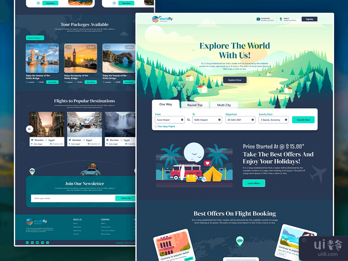 - Very useful for developers to find Travel Agency Landing Page concept, flow and designs.