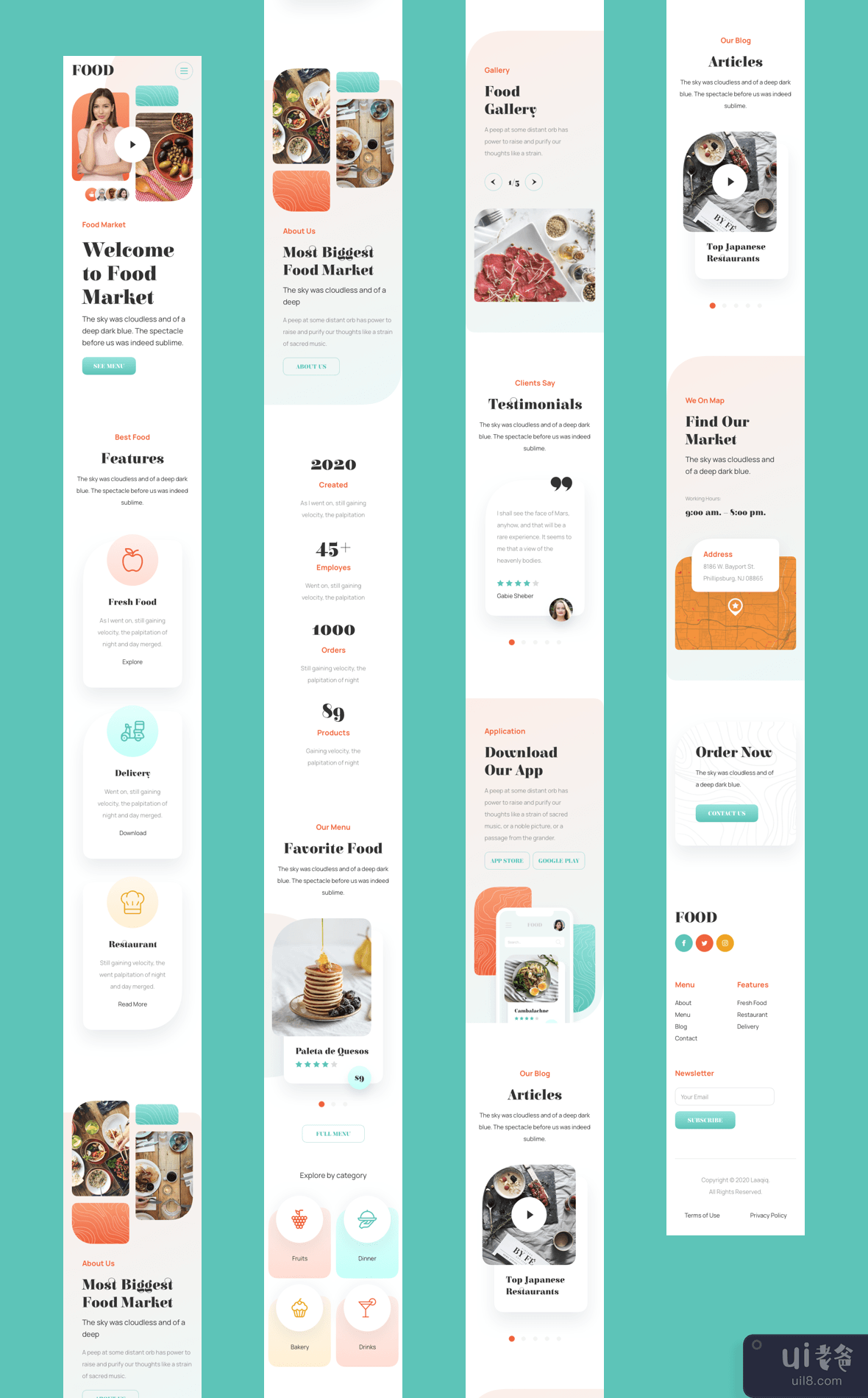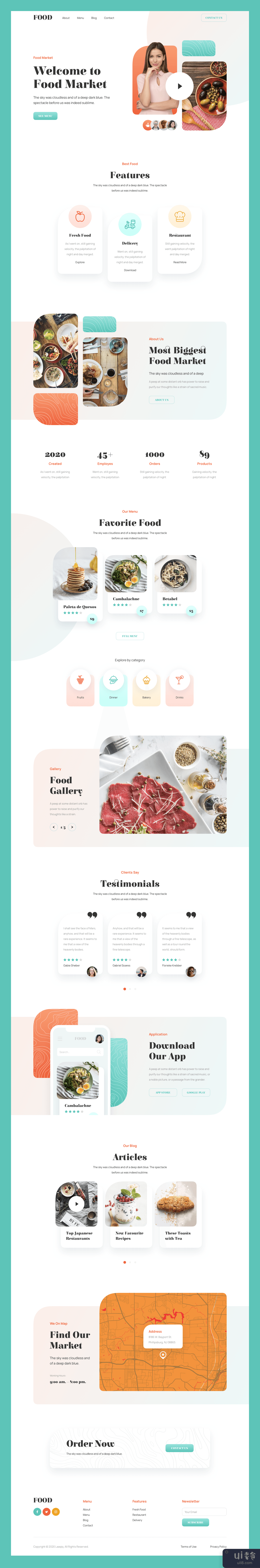 Food Market Responsive Landing Page perfectly organized and designed with latest design trends. Created for Sketch, Figma and Adobe XD.