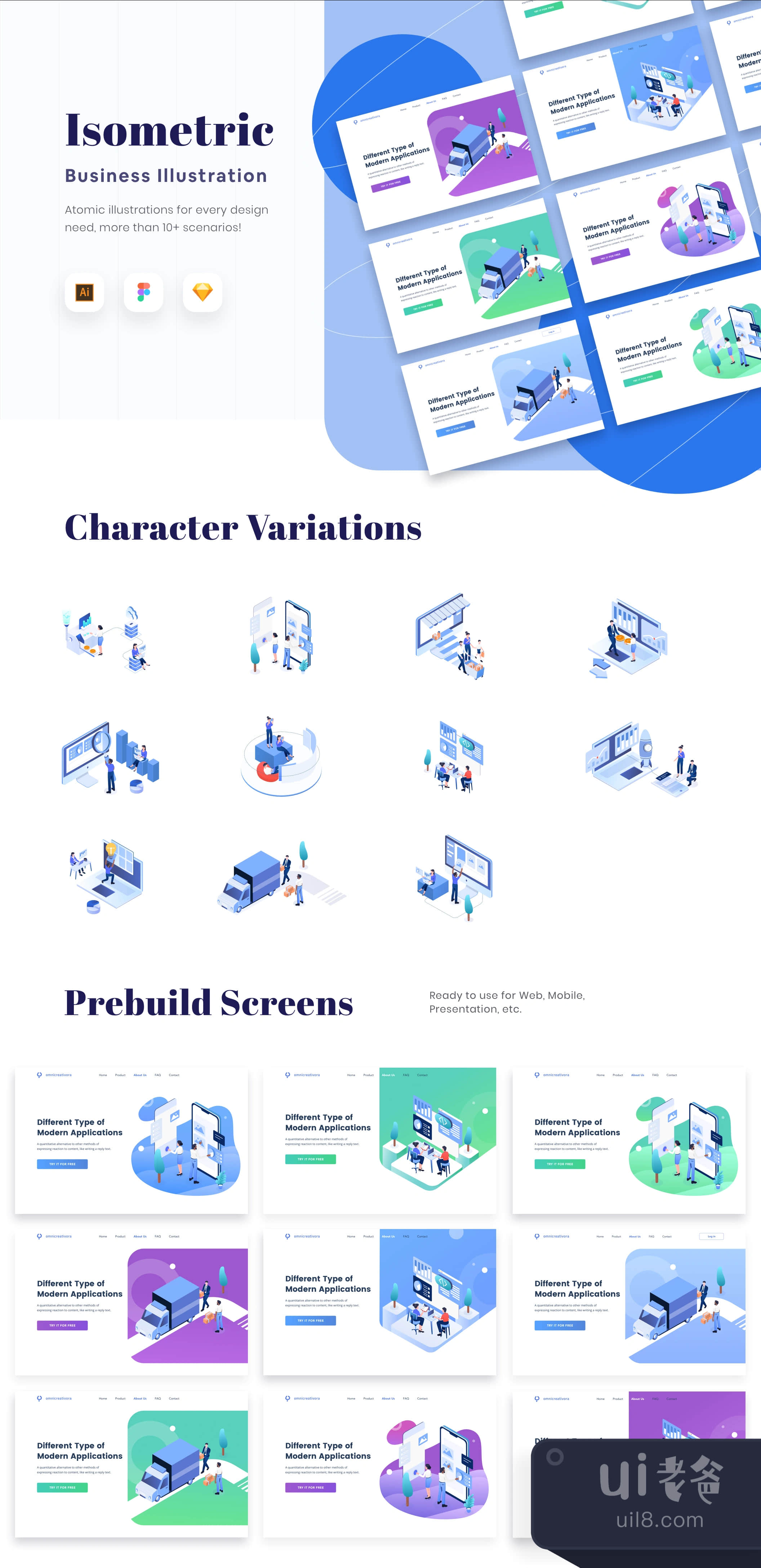 与网站和移动UI应用程序完美匹配,是有用的场景创造者。