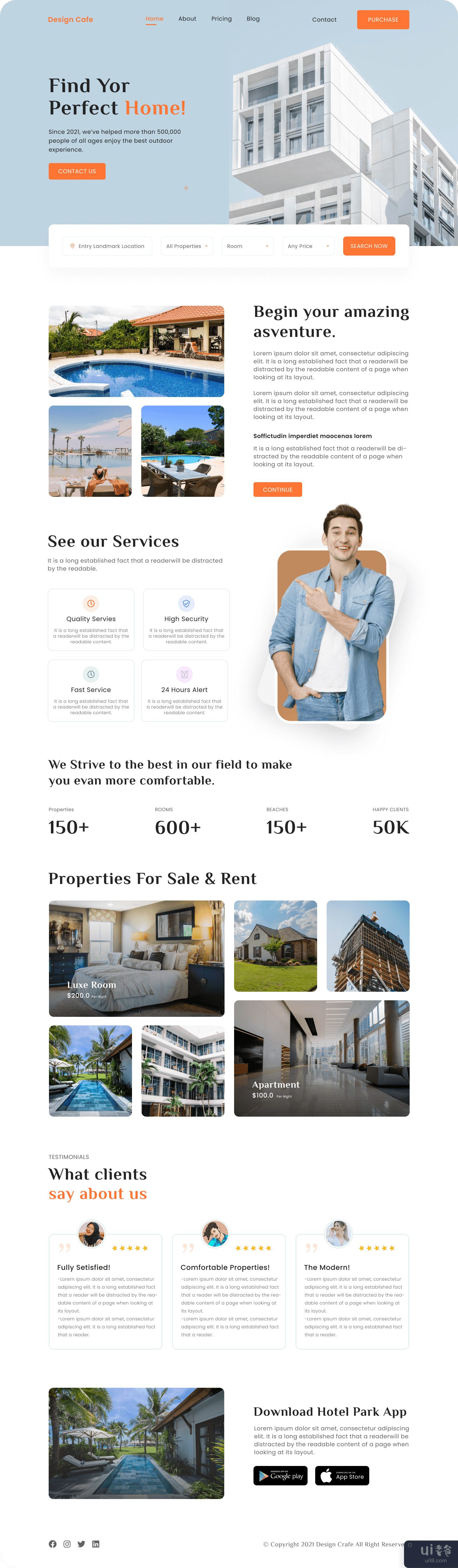 𝗛𝗲𝗹𝗹𝗼 𝗲𝘃𝗲𝗿𝘆𝗼𝗻𝗲 👋Here is my new exploration about Real Estate Landing Page, where helps people to find lodging easily.