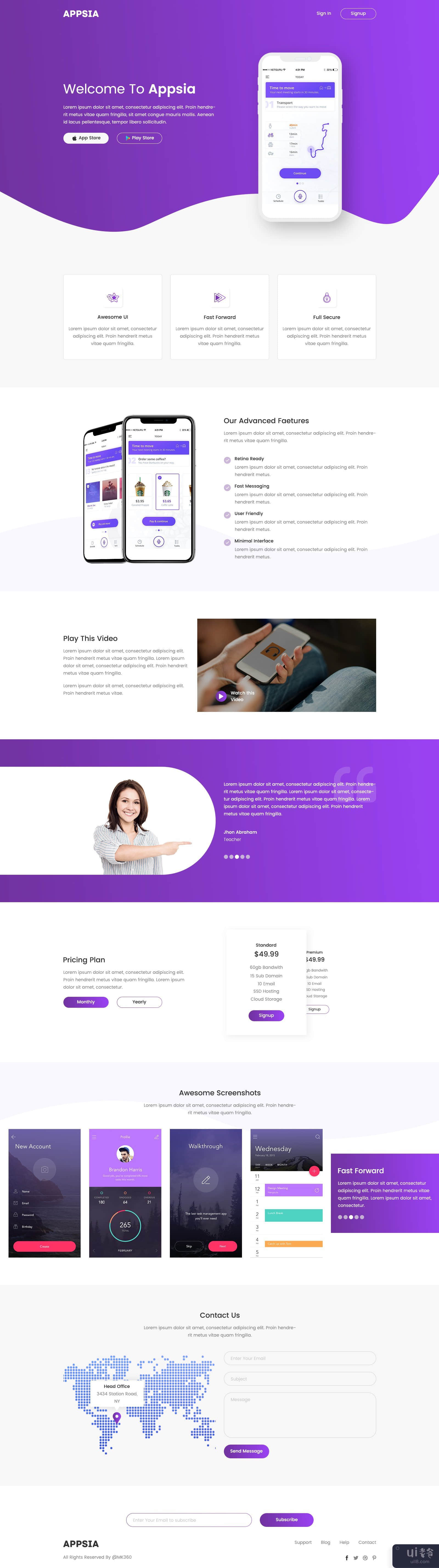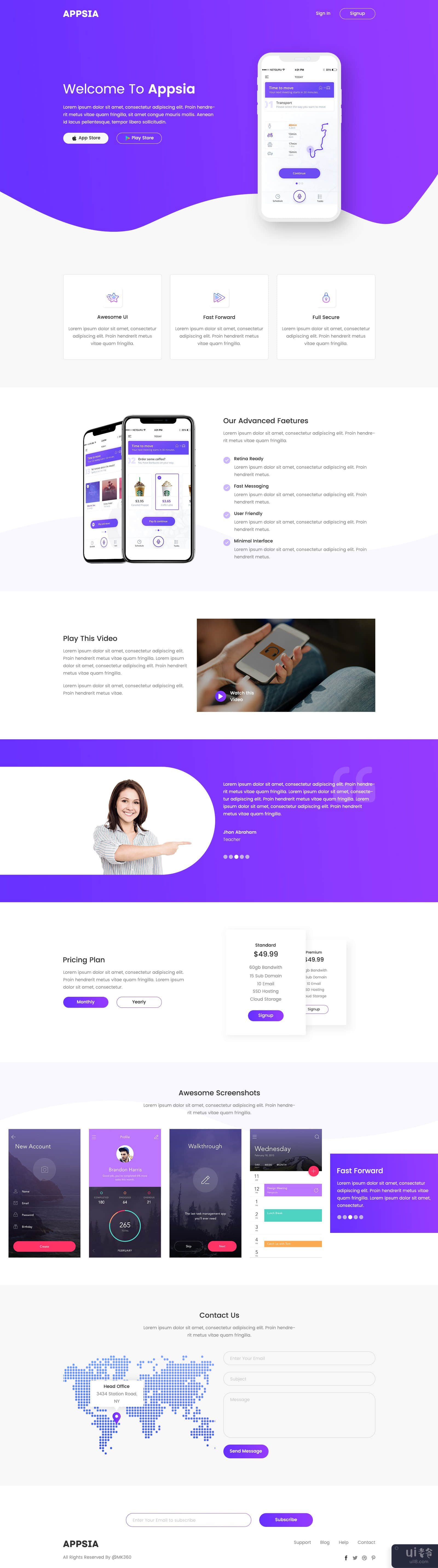 Appsia 是一个专业的、现代制作的 PSD 模板,可用于应用程序、软件和相关的任何移动应用程序。 PSD 文件组织良好并相应命名,因此非常容易定制和更新。已包含 3 个 PSD 文件。
