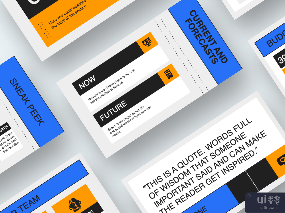幻灯片总数:31 张幻灯片适用于 Powerpoint 主题演讲使用和推荐的免费网络字体基于 Master Slides16:9 宽屏比例 (1920×1080px)
