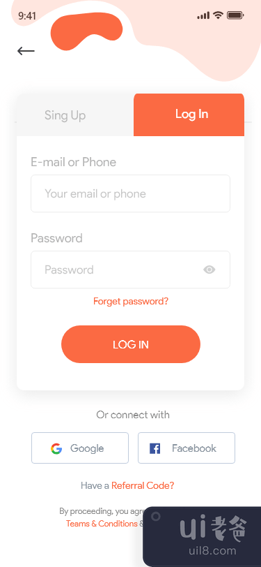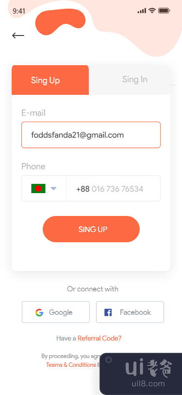 送餐 - 注册,登录所有屏幕(Food Delivery - sign up, log in all screen)