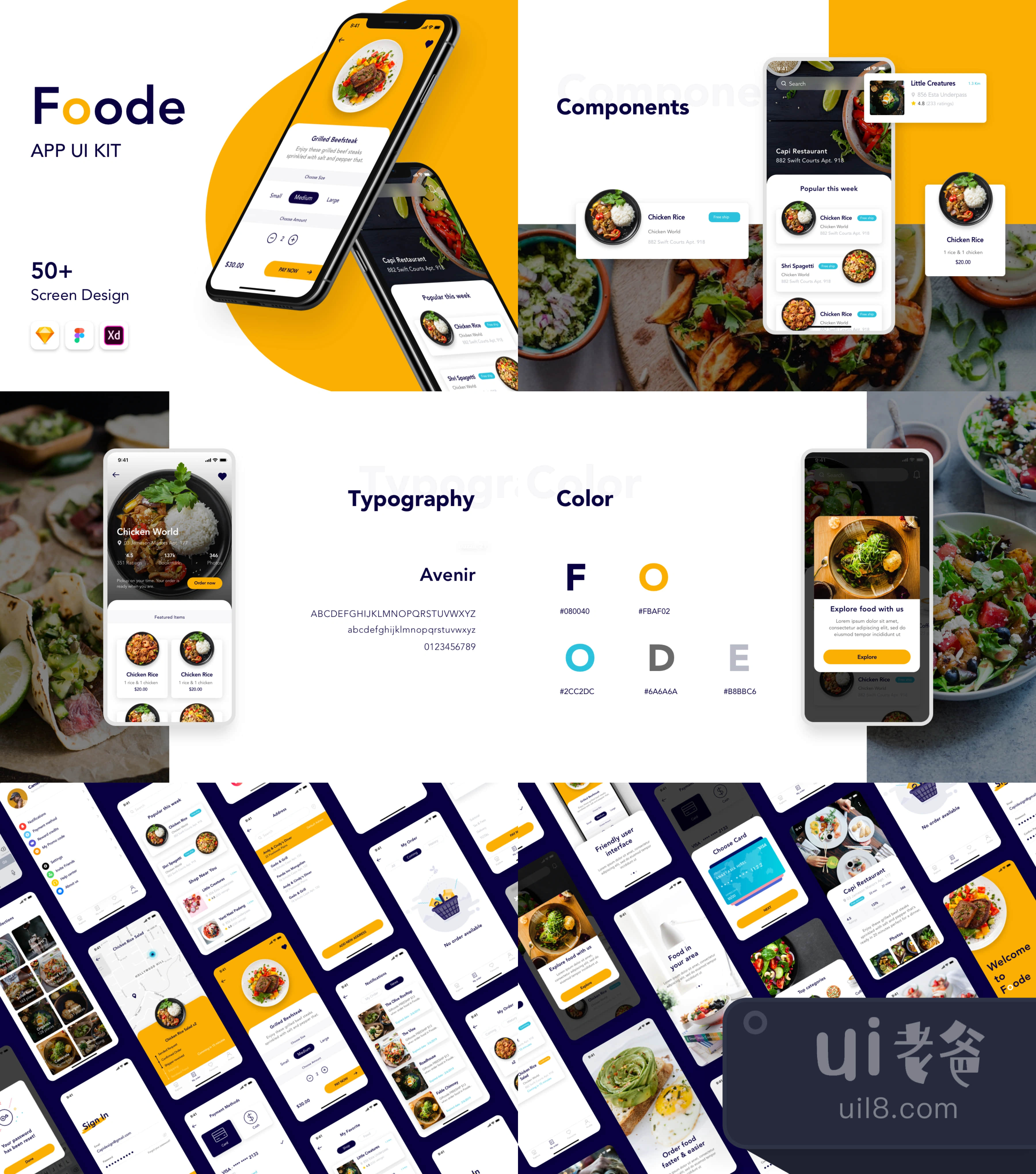 Foode是为品牌和设计师设计的订餐和送餐UI套件。 套装包括50多个屏幕草图、Figma、Adobe XD、Adobe Photoshop和InVision文件。完美的工具,帮助你创建食品订购和食品交付的应用程序。它有一个简单的设置和许多餐厅业务所需的功能,以留下一个好印象。