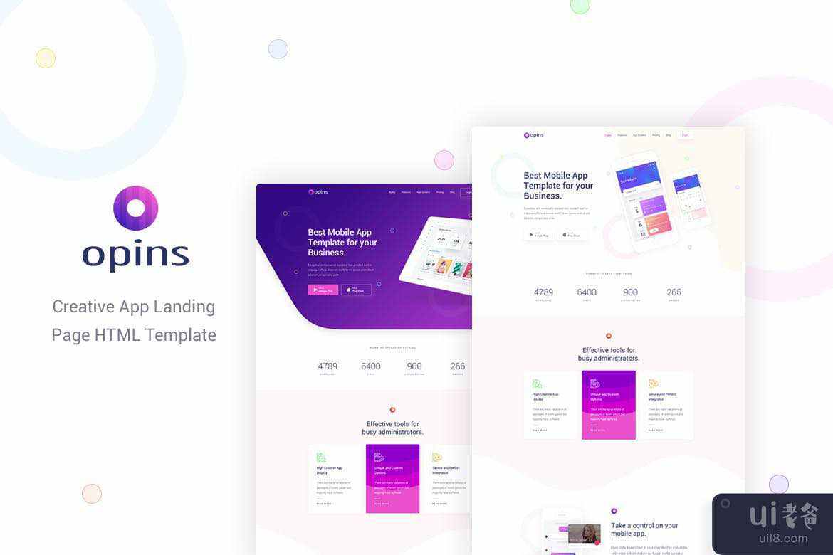 意见 - 创意应用登陆页面 HTML 模板(Opins - Creative App Landing Page HTML Template)