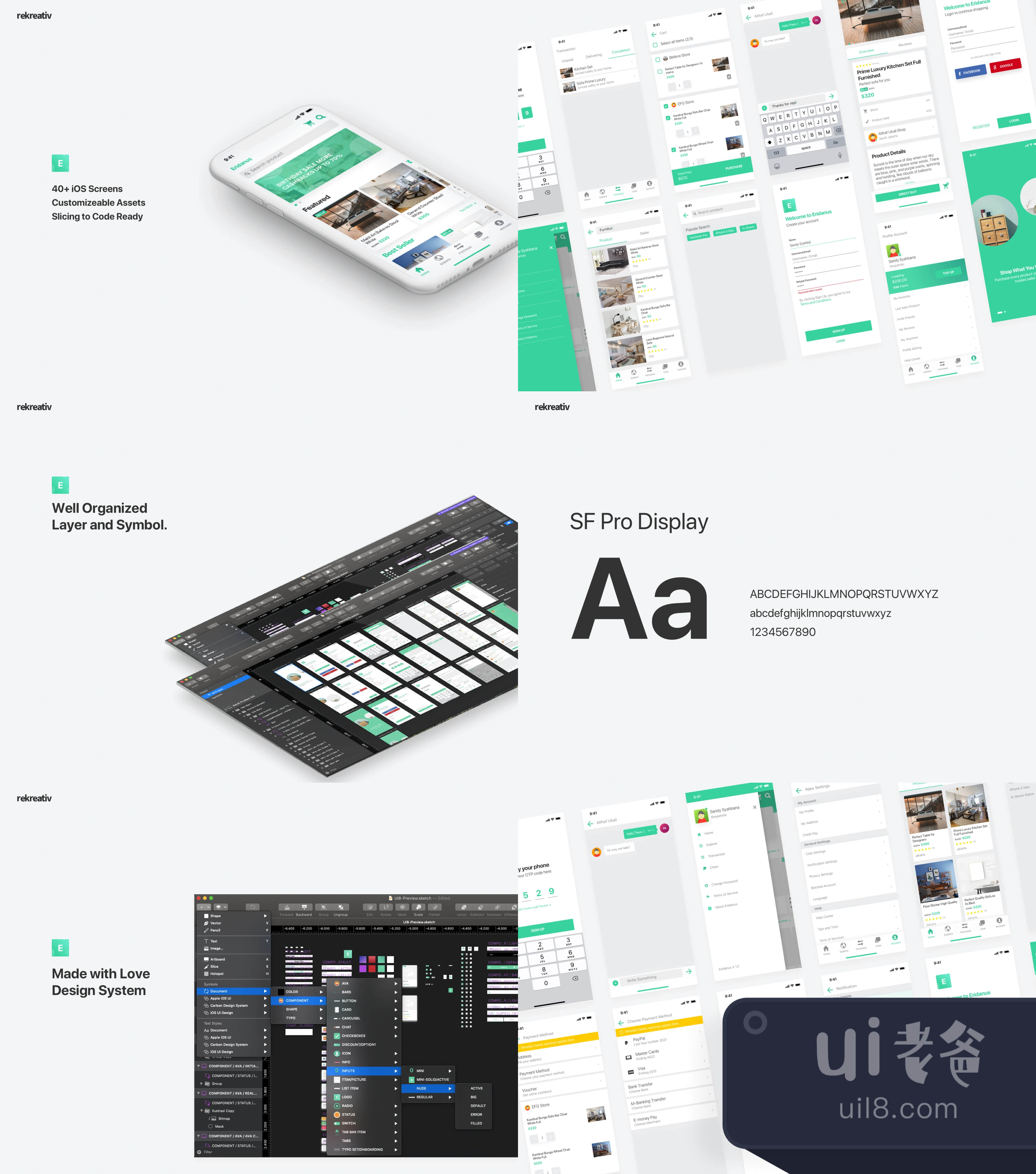 Eridanus是一个高质量的UI工具包,包含40多个基于电子商务的应用程序屏幕,将帮助你开发一个具有出色设计的应用程序。这个工具包是以这种方式创建的,所以所有的组件都是完全可定制的。所有的图层和符号都是经过精心组织的。