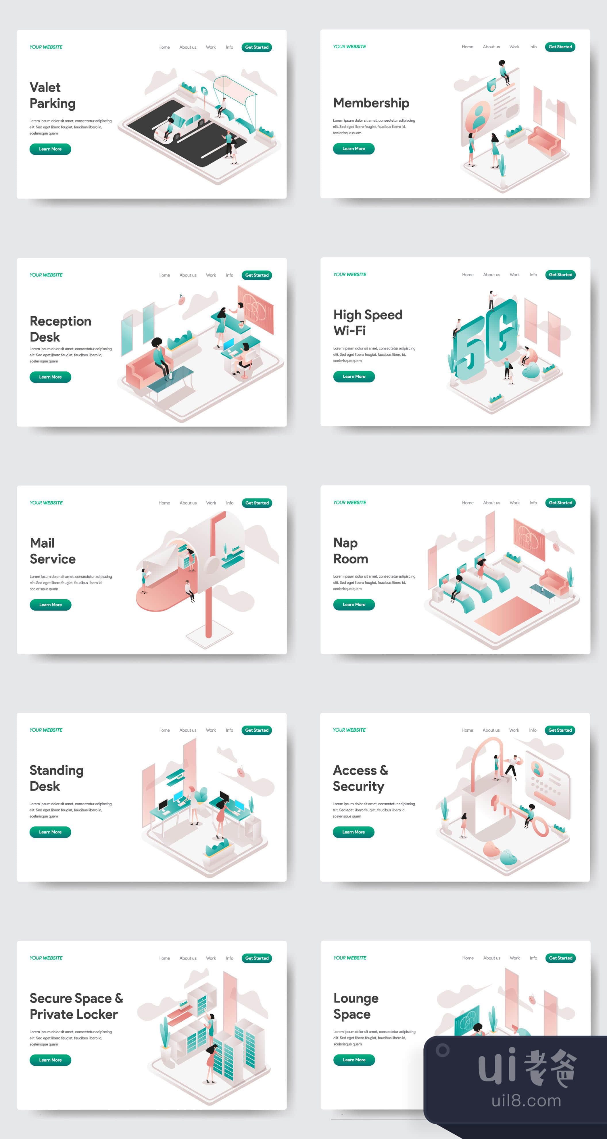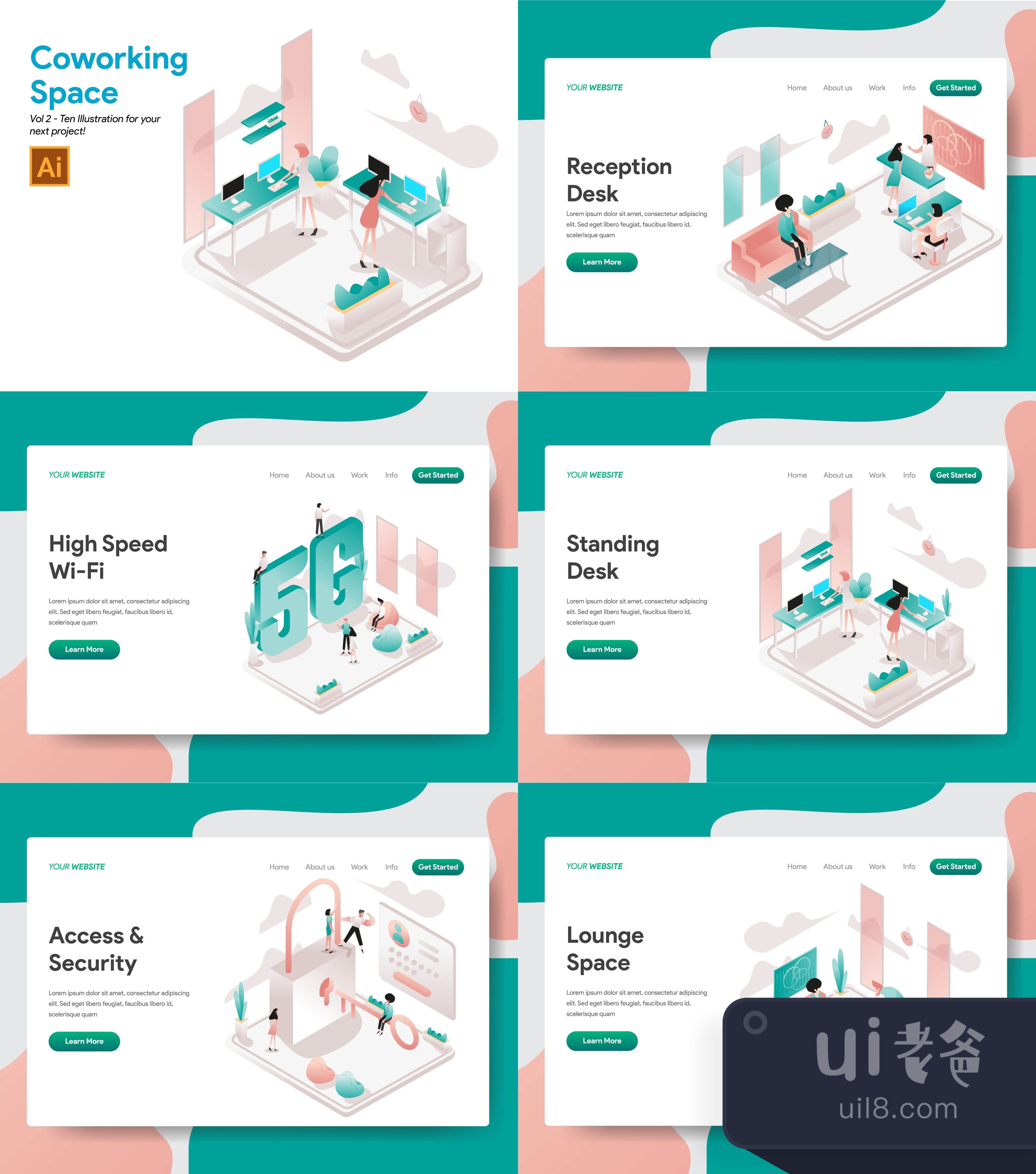 10 Illustration for Coworking Space Concept in vector EPS 10 file. Suitable for website pages, click preview button to view all 10 illustrations. Like, comment and follow to see more updates from us!