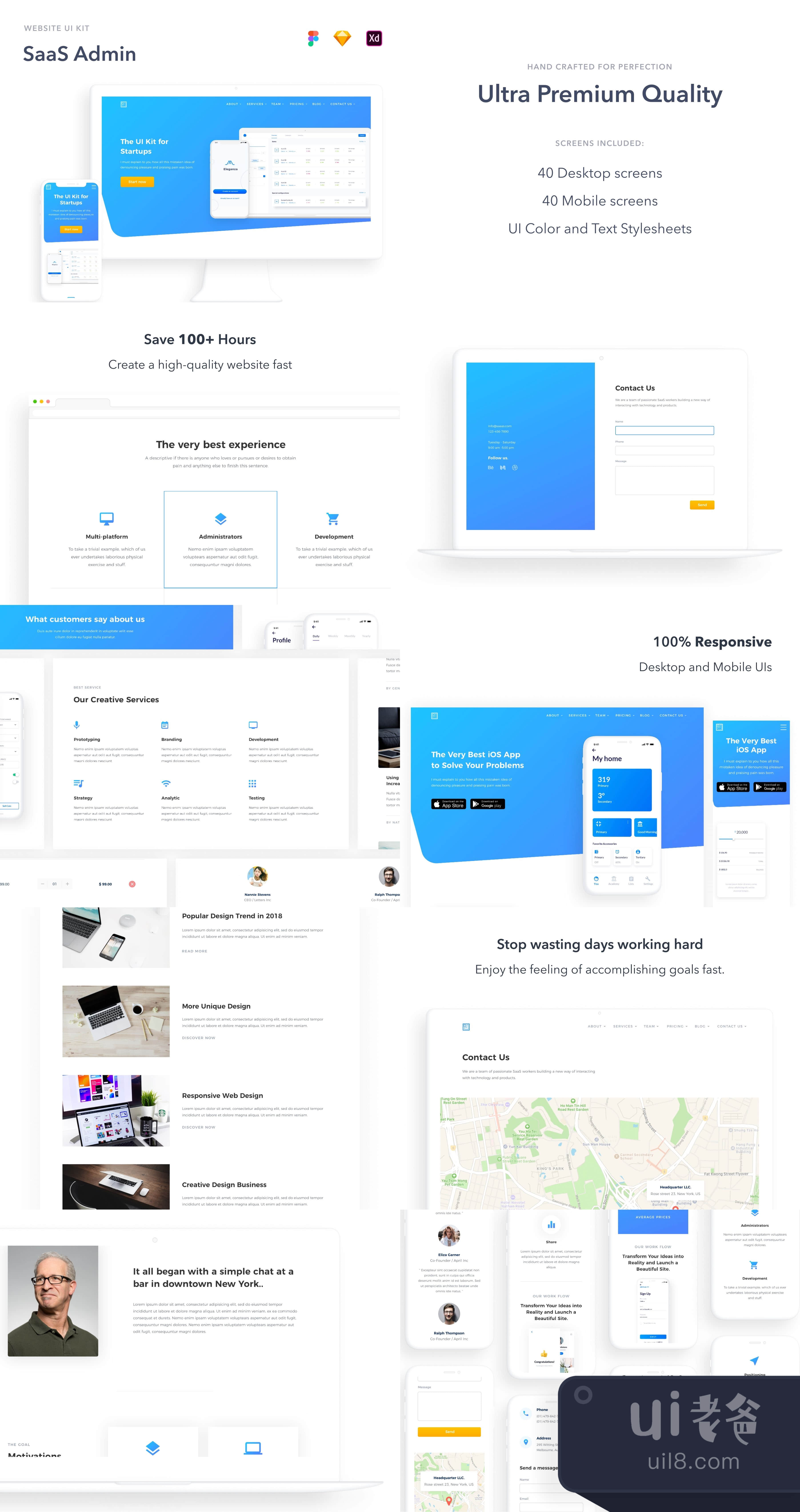 一个包含80多个屏幕和UI风格指南的庞大集合,可以以最快的方式启动你的网站、创业公司或任何介于两者之间的项目。