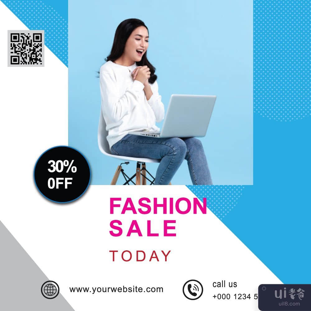 时装店超级销售社交媒体横幅模板设计(Fashion Shop Super Sale Social Media Banner Template Design)