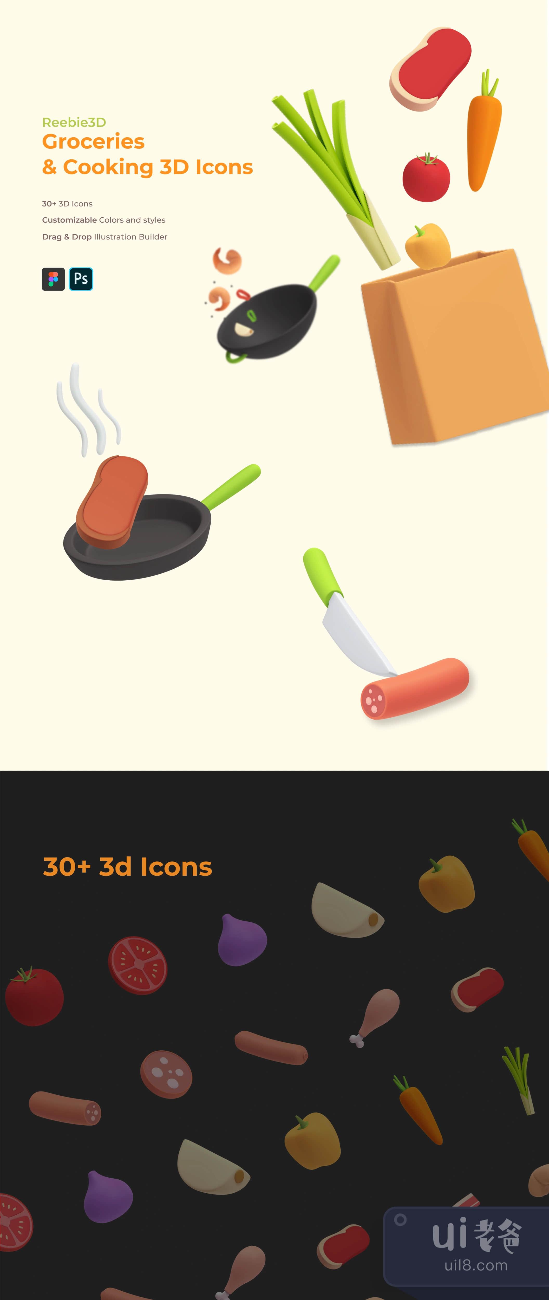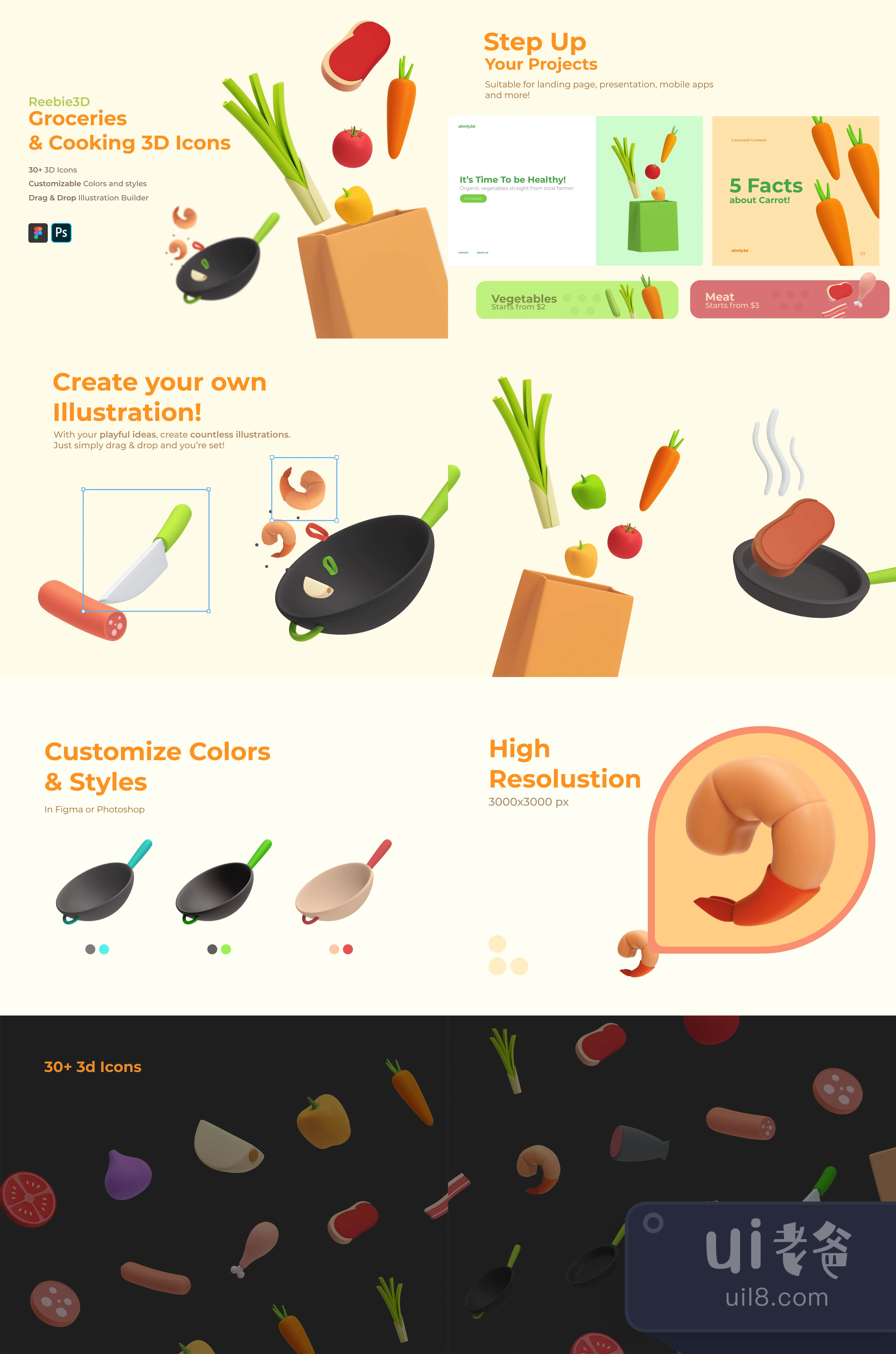 - 30+ Customizable 3D Icons