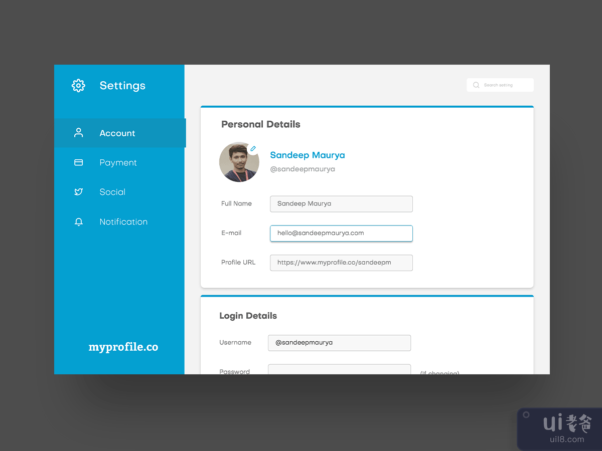 Daily UI 007. 挑战制作某物的设置页面,所以我创建了这个通用设置网页 ui。 使用的字体:目标