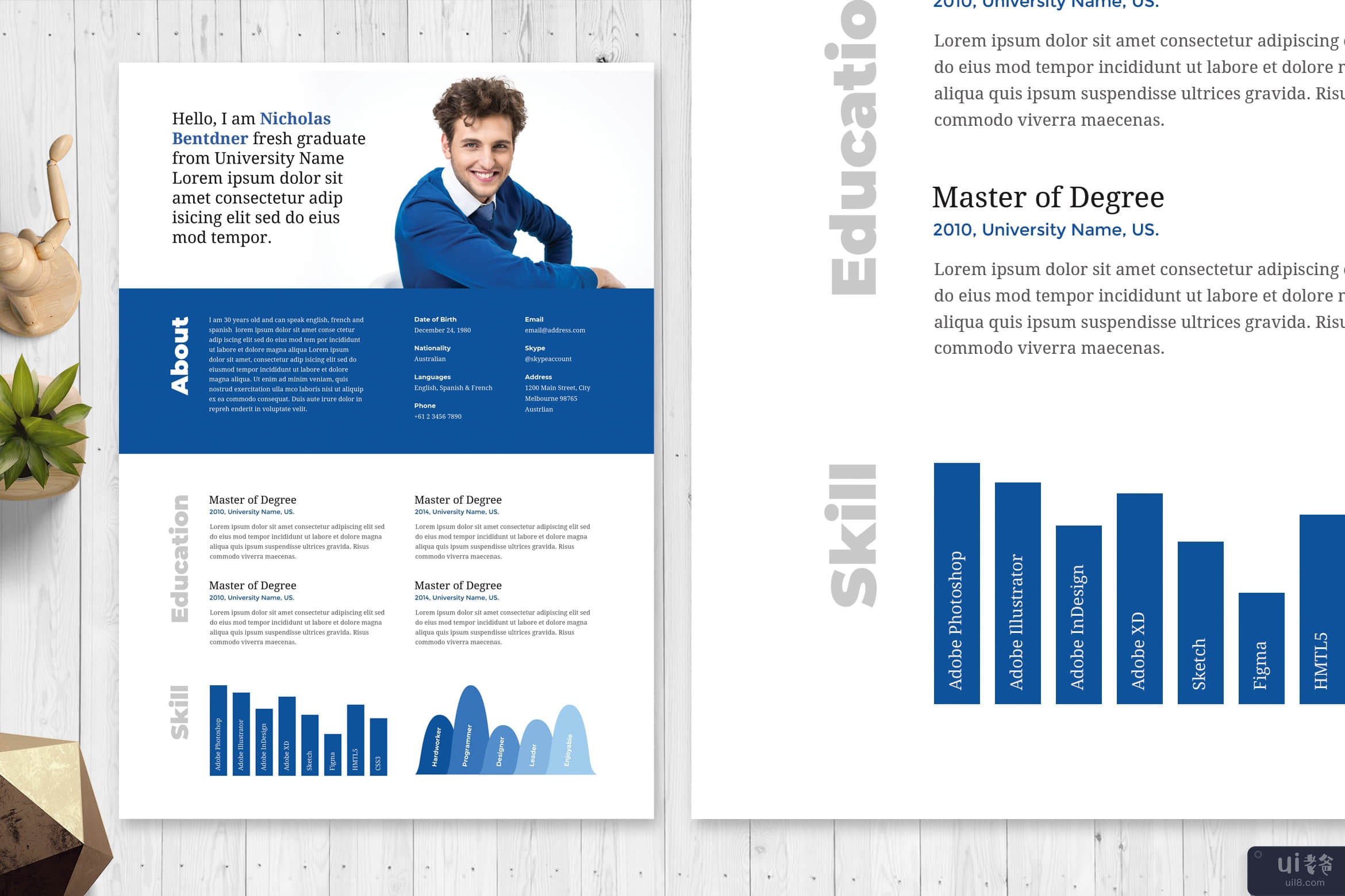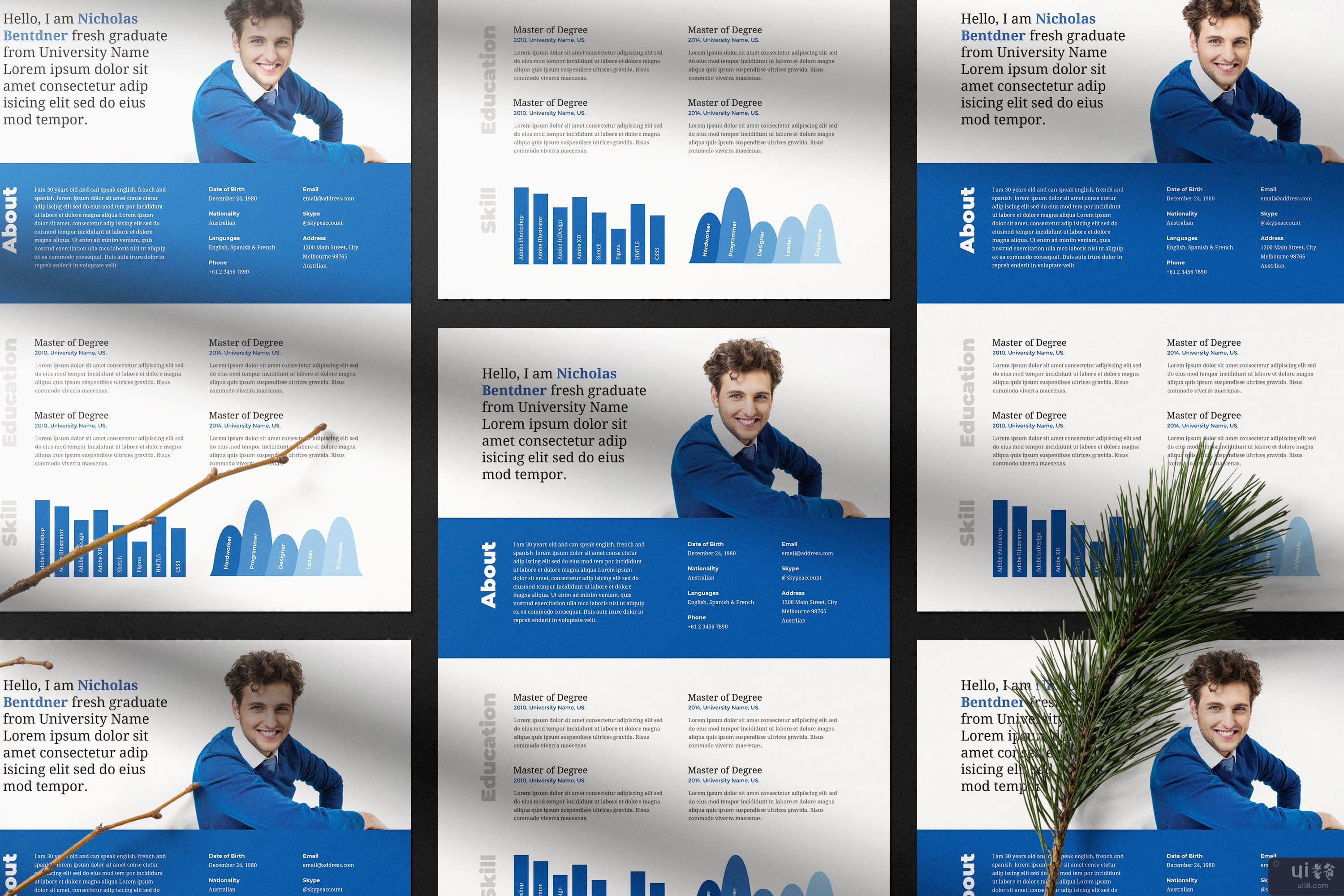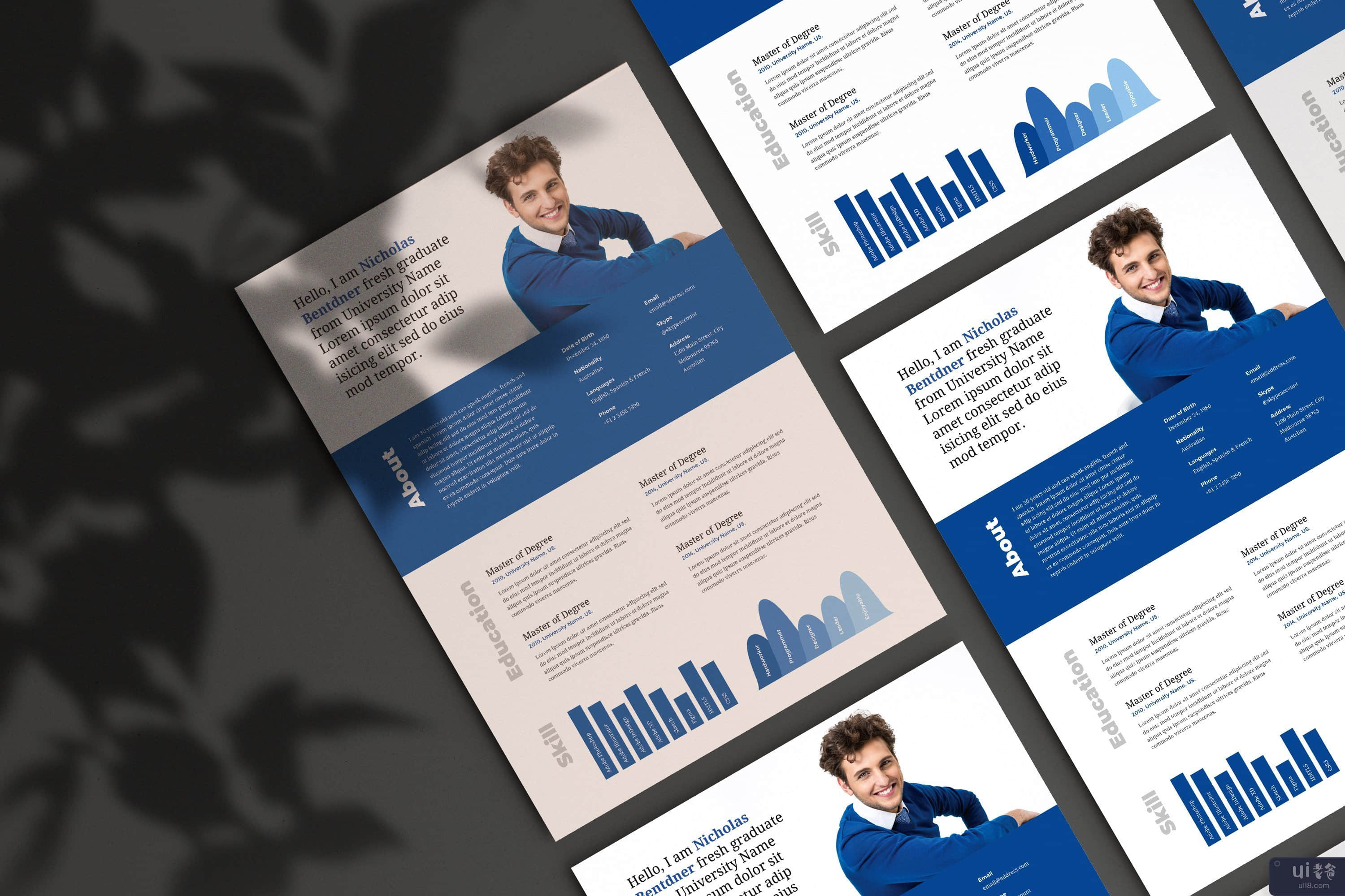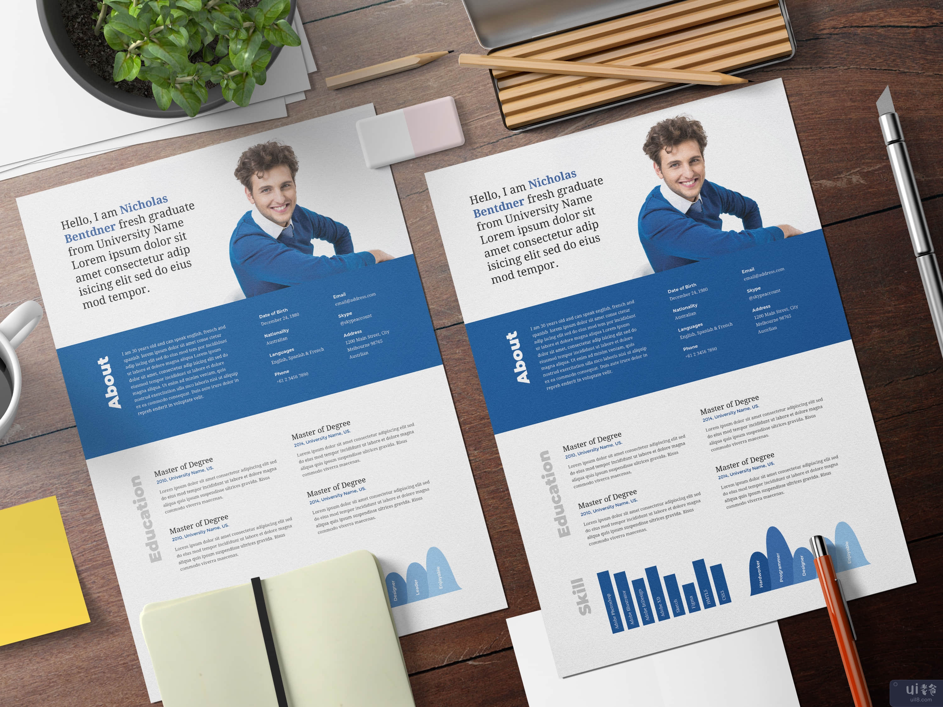 This is simple resume/cv template for your job application. This template are fully editable and customisable(text, color scheme, photo, & other graphics). Now, you can save your time to design professional resume for your next job application.