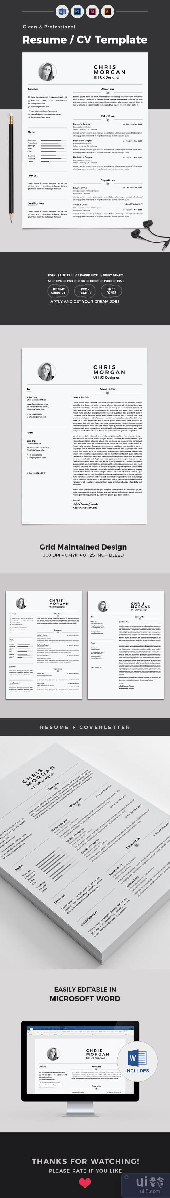简单、干净、现代和简约的简历模板可帮助您找到出色的工作。 此创意简历模板非常易于使用和自定义,因此您可以快速编辑和使用任何机会。
