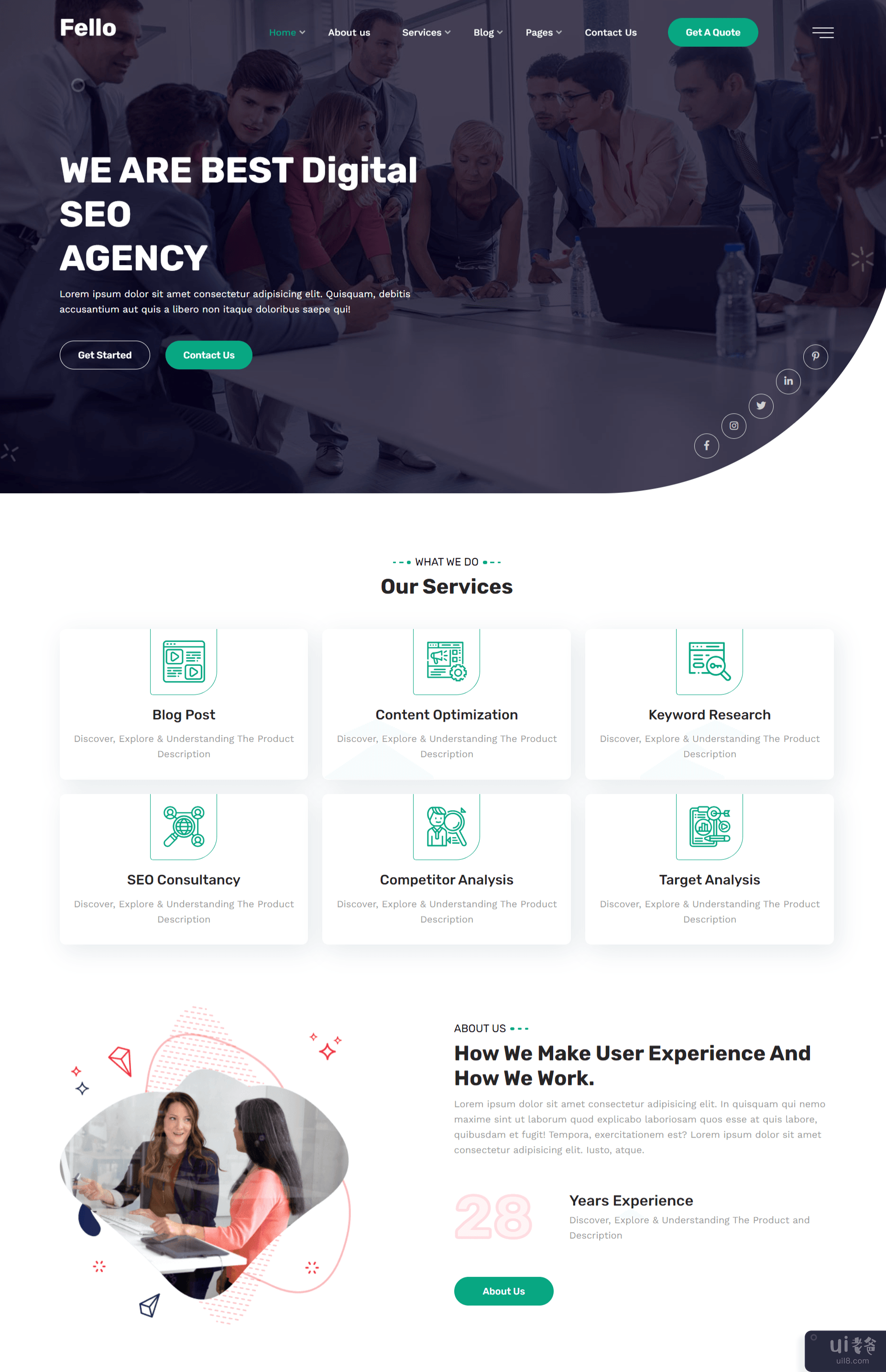 Fello - Digital SEO Agency Web Template is the best multi-purpose IT and Business HTML5 template for Company Template, E-commerce Template, IT Services, Business Services Consulting Firm, Software Company, etc topic. It's based on IT Services company, Any kinds of Business Services Company.