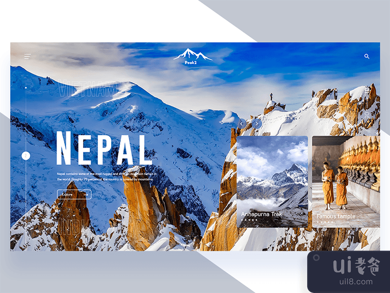 当前位置: 首页UI正文 旅游网站(Travel website) UI 3年前 0 1.8K 2 收藏 -中文- 旅游网站概念。 -英文- Travel website concept. 声明:本站所有文章,如无特殊说明或标注,均为本站原创发布。任何个人或组织,在未征得本站同意时,禁止复制、盗用、采集、发布本站内容到任何网站、书籍等各类媒体平台。如若本站内容侵犯了原著者的合法权益,可联系我们进行处理。旅游网站 PaulMacKay青铜用户 收藏 海报 链接