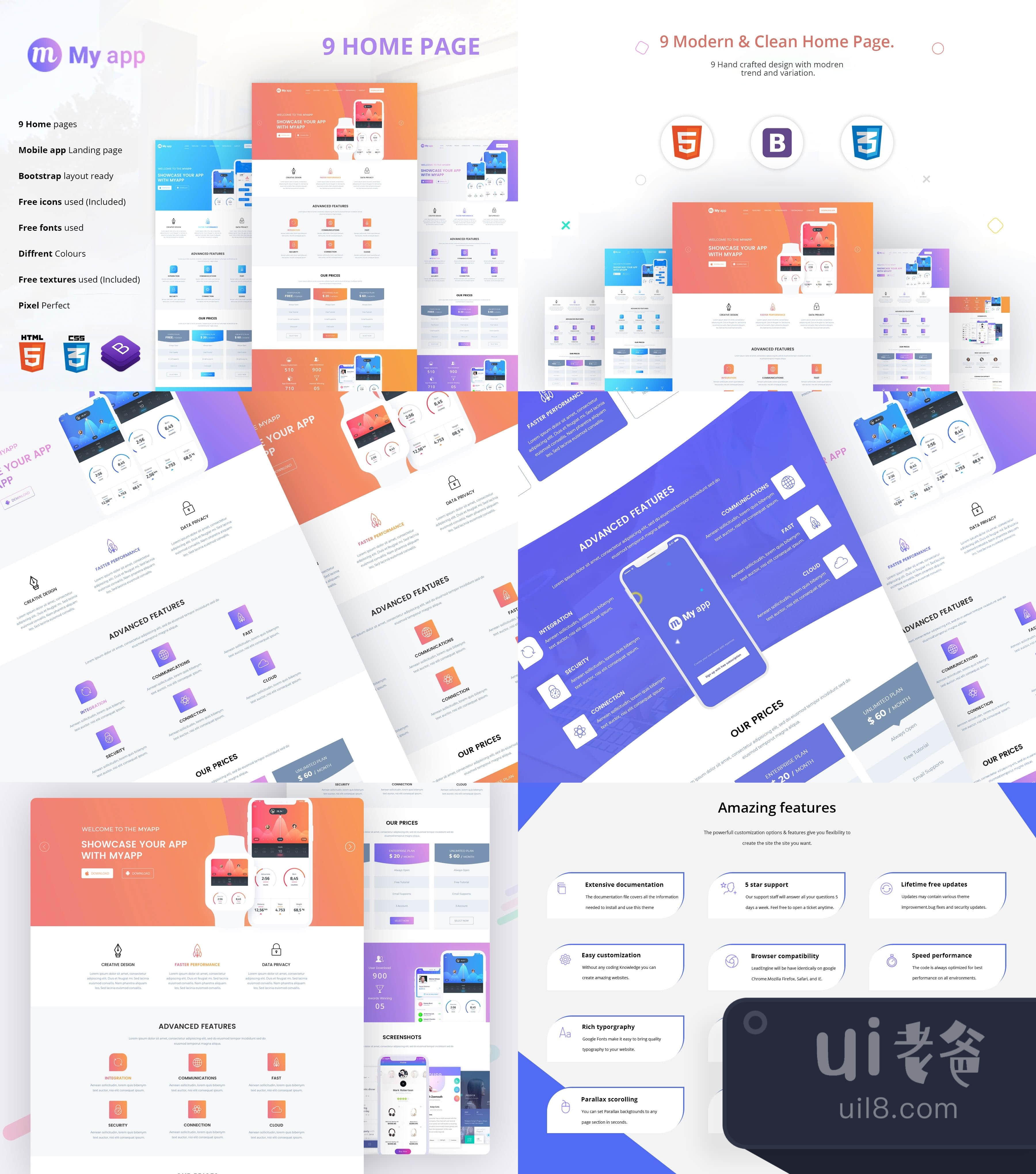 Myapp是一个现代和高度互动的着陆页,没有废话的用户体验。这个模板的设计是这样的UX,它可以描述一个应用程序的所有功能,并增加下载量,这是登陆页面的核心目的。采用bootstrap网格系统设计,因此它可以在开发阶段轻松实现。它也可用于推广任何其他软件。