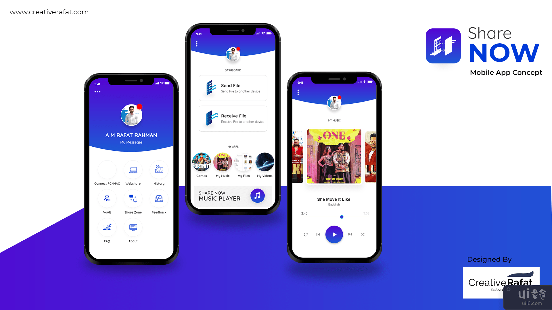 ShareNow Mobile App UI 是一个分享应用的设计理念。